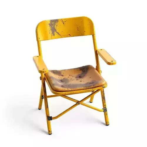 This is a meticulously crafted 3D model of a highly distressed yellow folding chair, complete with armrests, designed to bring a touch of realism and history to any digital environment. The model features extensive wear and tear, including chipped paint, rust-like grime, and a visibly aged surface, making it ideal for scenes requiring a sense of abandonment, industrial decay, or historical neglect. Perfect for game developers seeking authentic props for post-apocalyptic, urban exploration, or horror settings, it also serves as an excellent detail asset for architectural visualizations of derelict buildings or forgotten spaces. Digital artists can leverage this model for photorealistic renders and immersive AR/VR experiences, adding depth and character to their compositions. The asset is optimized for real-time applications, ensuring smooth integration into game engines, while its high-quality PBR textures provide stunning visual fidelity for static renderings. It boasts clean, optimized topology, is fully UV unwrapped, and comes with a comprehensive set of PBR texture maps (Albedo/Base Color, Metallic, Roughness, Normal, and Ambient Occlusion). Supported file formats include GLB, OBJ, FBX, USD, DAE, and PLY, ensuring broad compatibility across various 3D software and platforms. This model is ready to be dropped into your scene, offering immediate visual impact.