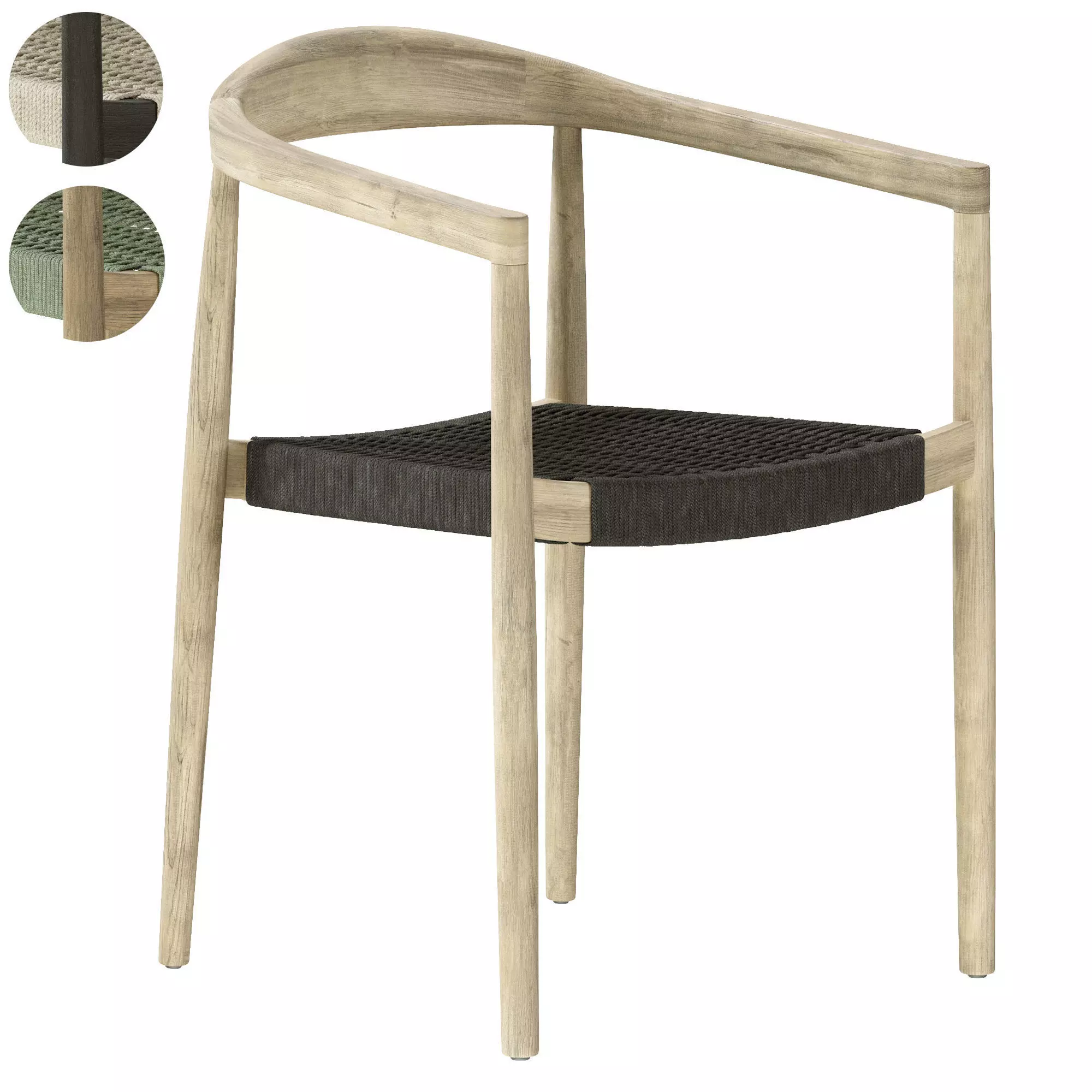 YdaliaYdalia stackable outdoor chair in solid teak wood with natural finish and black ropehttps://kavehome.com/en/en/p/ydalia-stackable-outdoor-chair-in-solid-teak-wood-with-natural-finish-and-black-ropeModel properly sized in mm units Model has no hidden/frozen elements, no groups/linked objects No lights, cameras, helpers, layers, particle view All elements has correct normals No any modifiers in stack except of turbosmooth Elements properly named