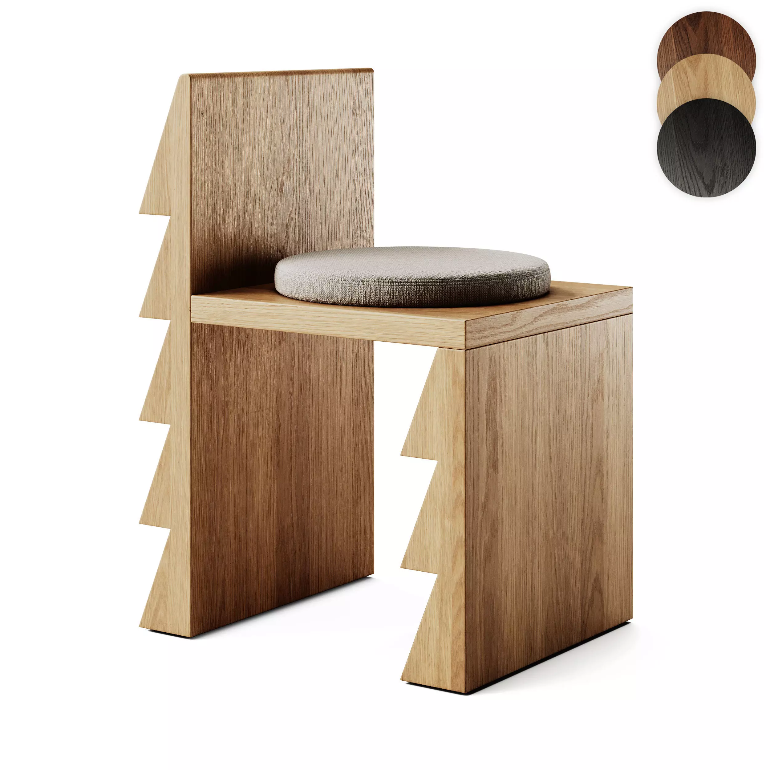 Stylistic Features: The ZigZag Chair from Studio Big Moon Casa AnKan showcases a bold, architectural aesthetic with premium timber construction and a soft fabric cushion. This collectible design piece perfectly embodies contemporary and minimalist aesthetics, making it a versatile choice for high-end residential and commercial lounge projects. Ideal as a functional accent, side chair, or sculptural element in luxury living rooms, modern offices, or galleries. Its unique zigzag silhouette and refined natural wood finish ensure it stands out in any sophisticated interior design.