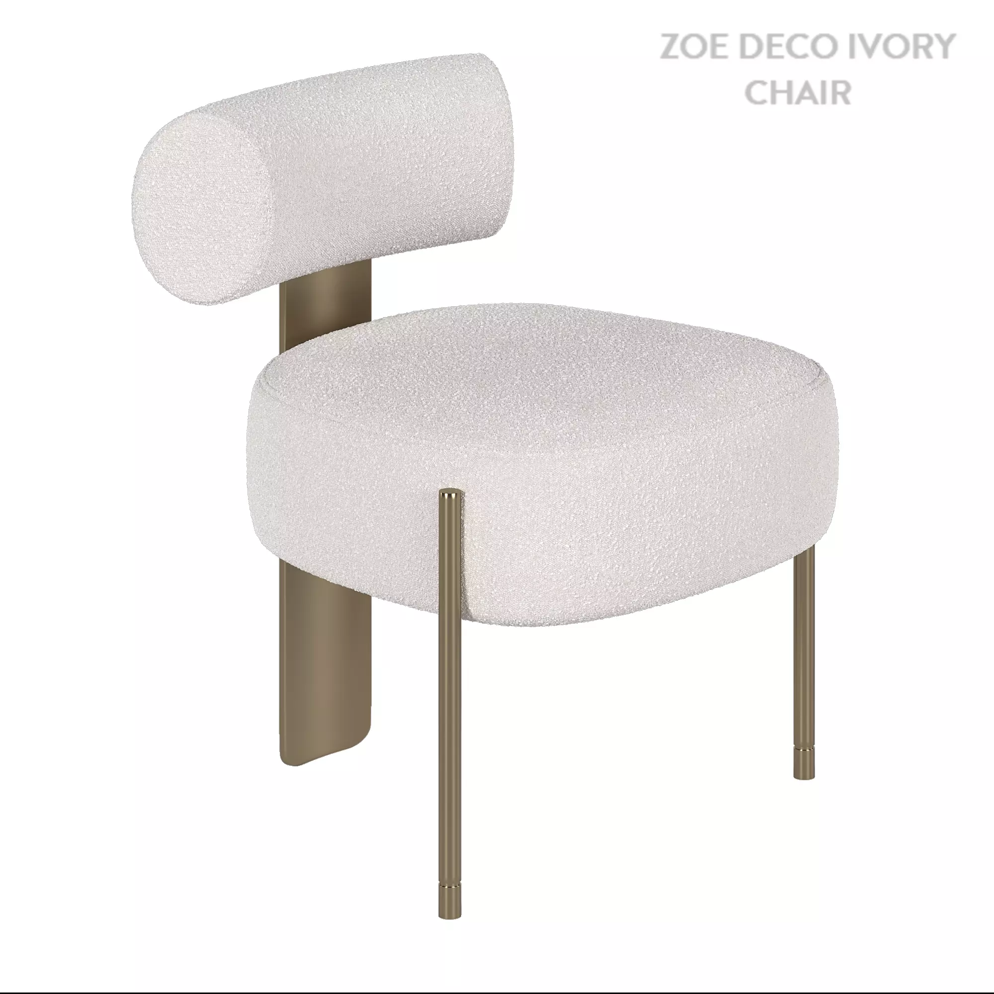 Name: Zoe_Deco_Ivory_chairFormat: 3Ds Max 2021Render: Corona (11)Polys: 8768Verts: 8782XForm: yesModel Parts: 3 Matclasses: CoronaLegacyMtlUnits: MillimetersDimension: 609.38 x 667.46 x 753.15Export: FBX - 1.62mb OBJ - 1.03mb