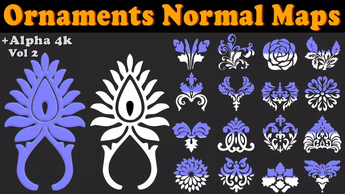 This pack includes 100 ornaments normal maps and alpha for substance painter to add detail in your 3d projects.