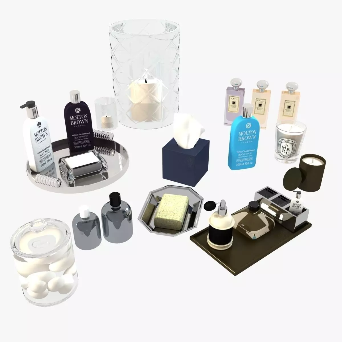 The model has material settings that define how surfaces look (color, shine, transparency, etc.).