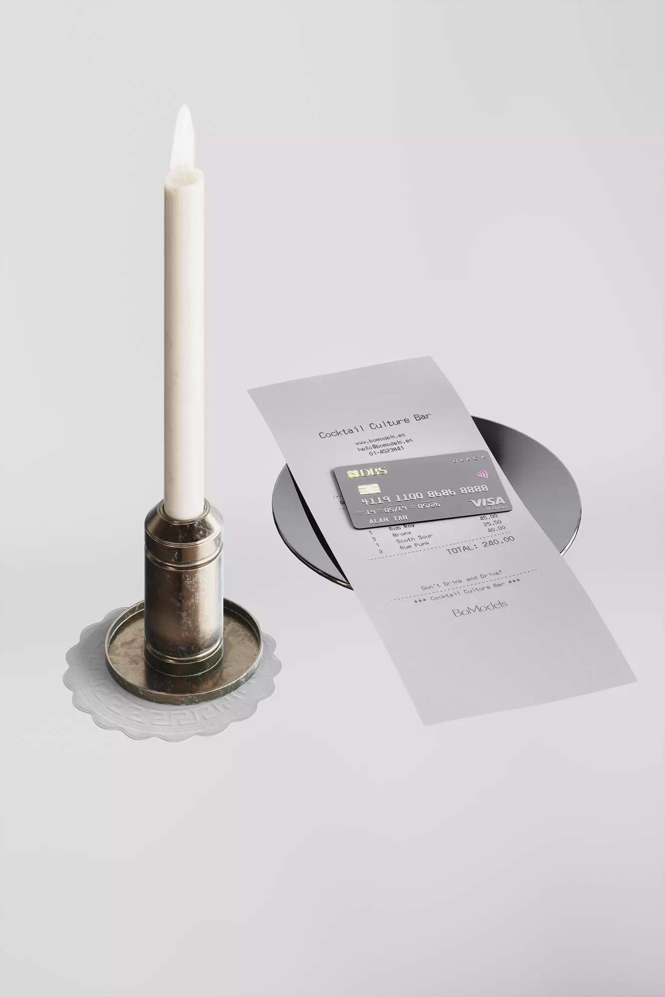 Candle and bill 3D model
