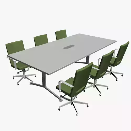 Geometry:There is a conference or meeting table with 6 chairs in thispackage.