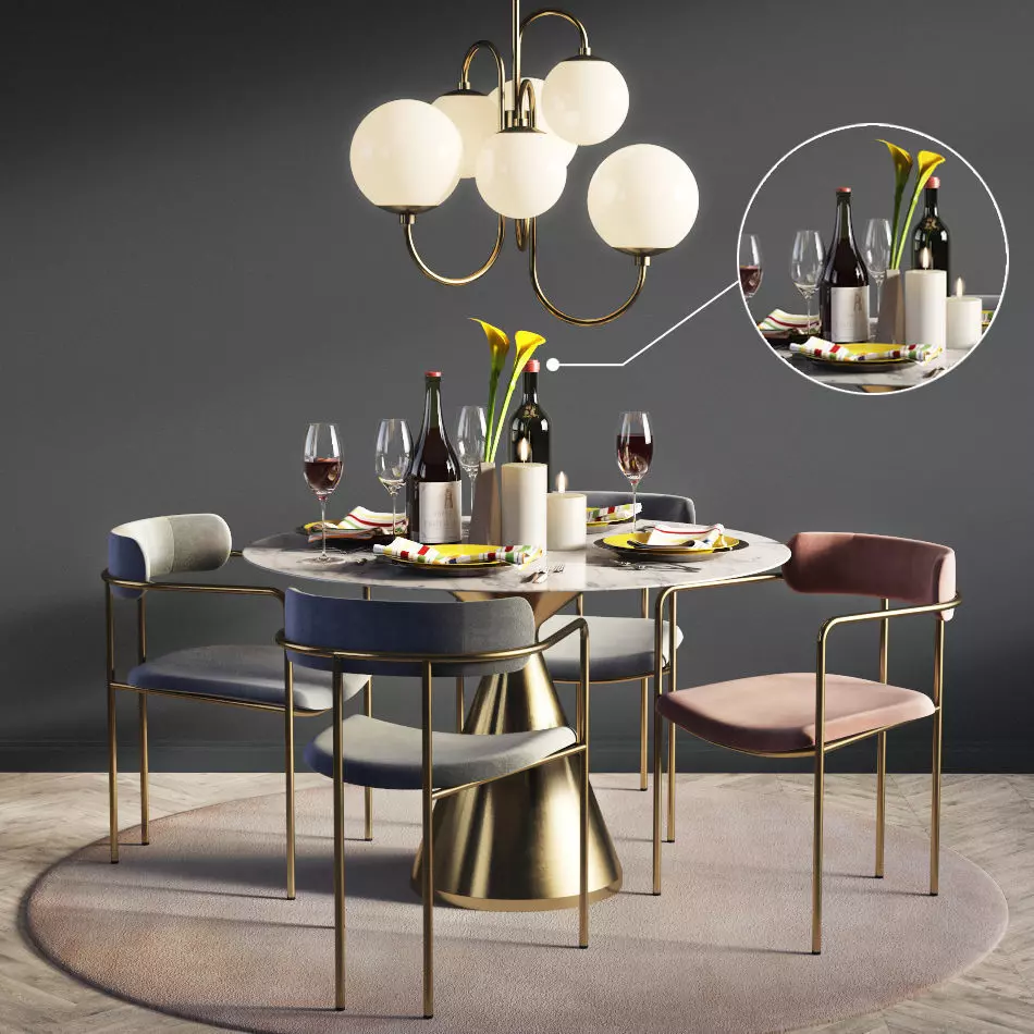 The model has material settings that define how surfaces look (color, shine, transparency, etc.).