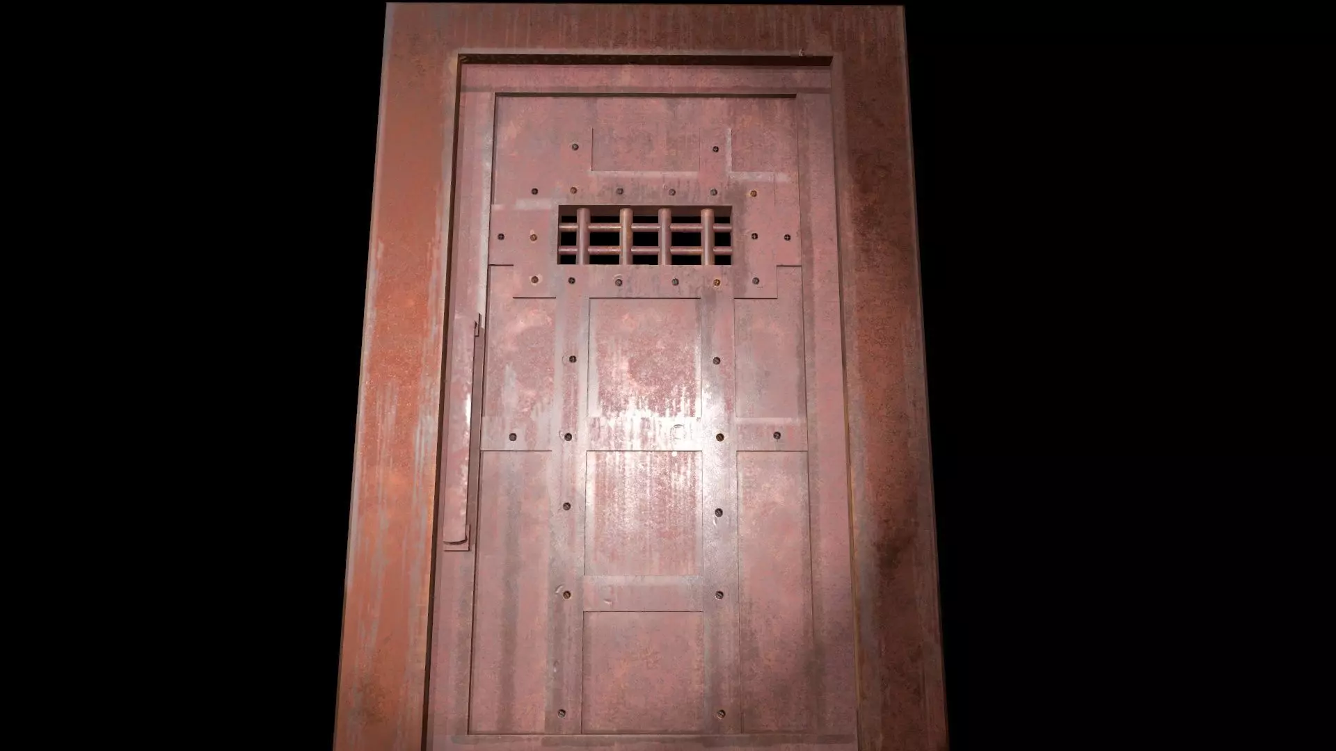 A worn metal prison door. A static object for use in your games. It is not animated.