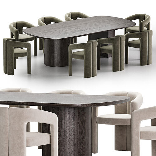 Chair: https://www.cassina.com/ww/en/products/dudet.html?cas_rivestimento=Y-Y244#562-dudet_271518table: https://gubi.com/en/us/collections/tables/moon-table-collection