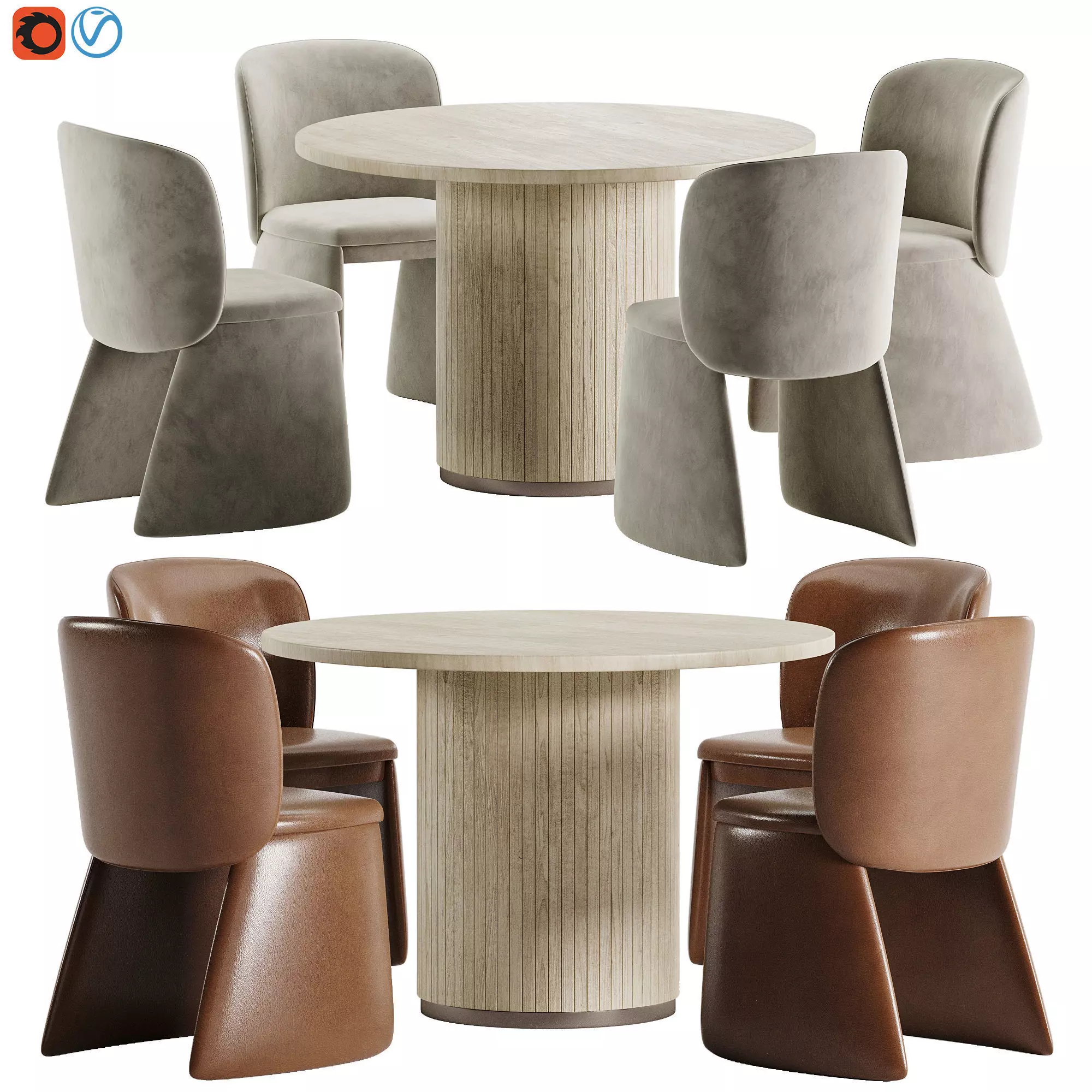 CHair: https://www.westelm.com/products/evie-leather-dining-chair-h7015/Table: https://futonland.com/product/chelsea-oak-round-dining-table