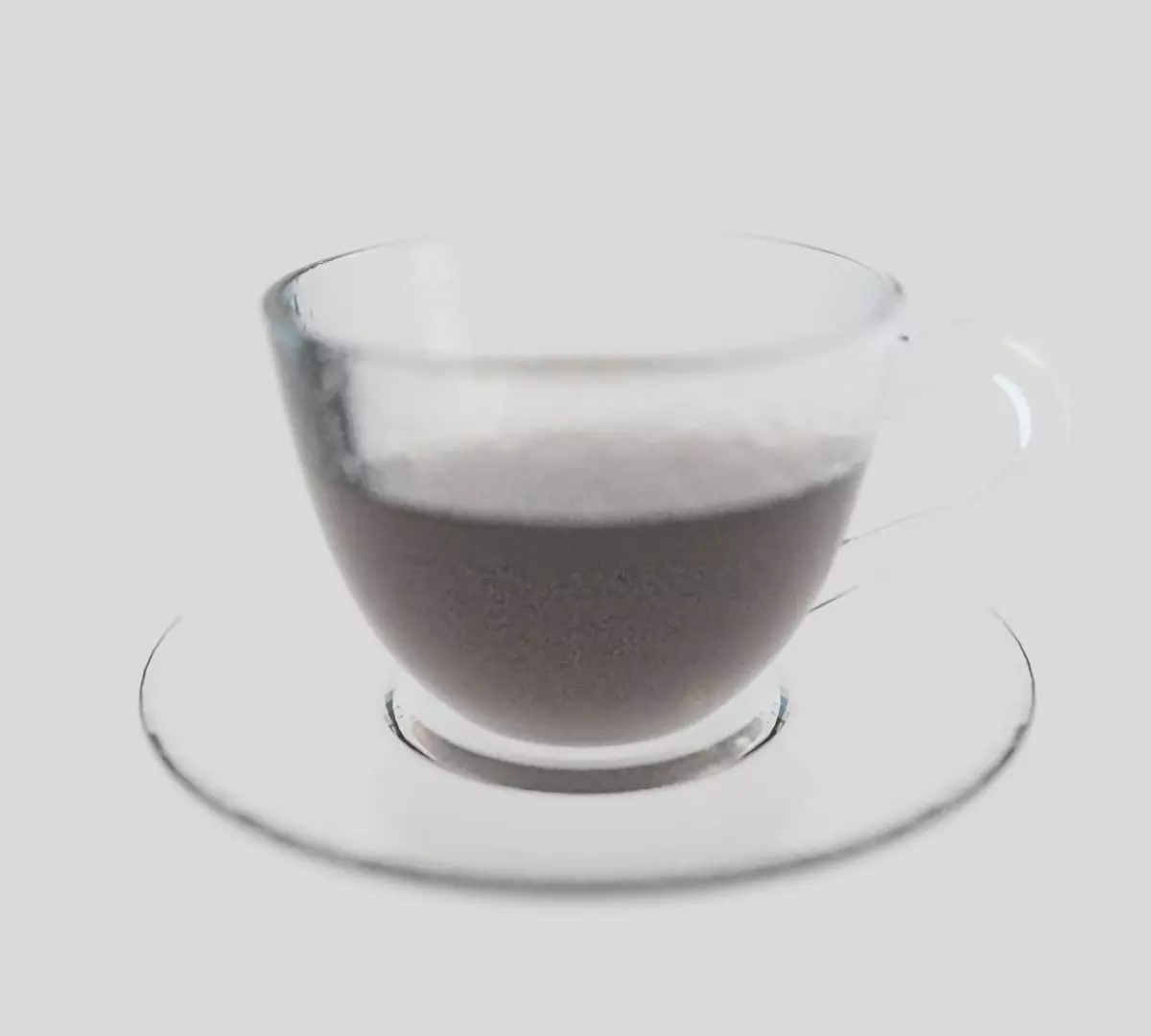A Coffee in a Glass Cup on a Glass Plate, a perfect 3D model for your kitchen.A detailed glass cup, smoothable and UVunwrapped made with Blender.
