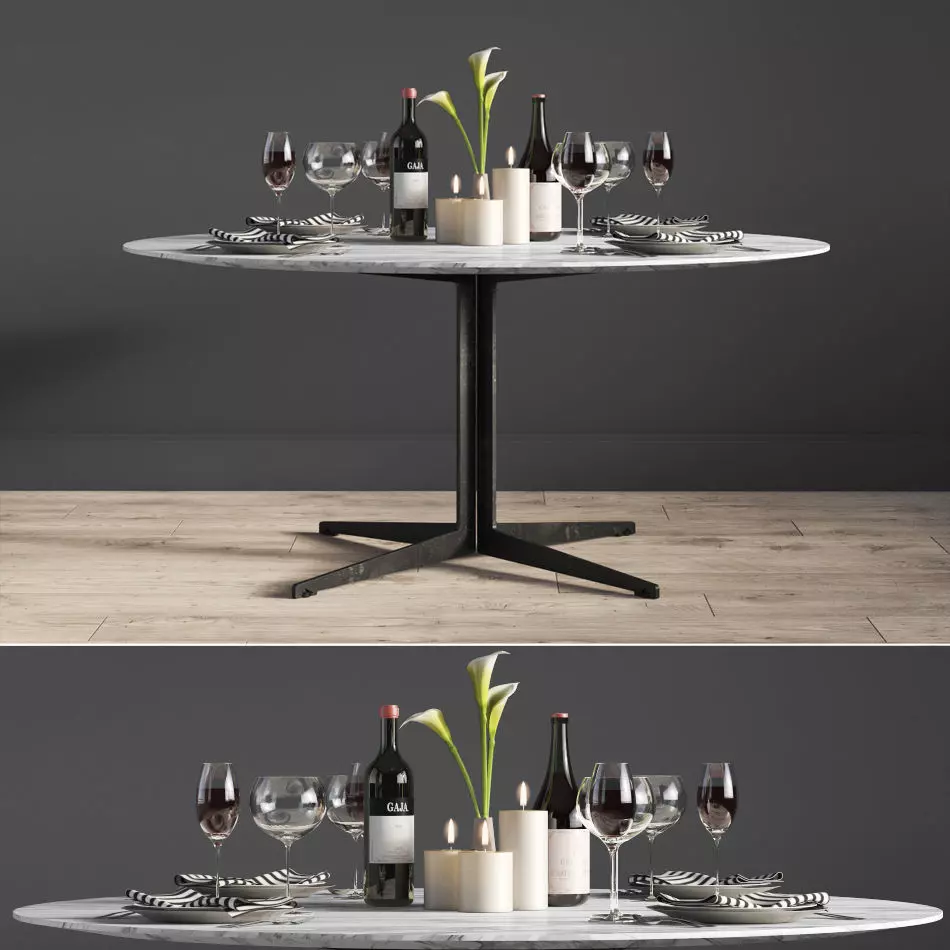 The model has material settings that define how surfaces look (color, shine, transparency, etc.).