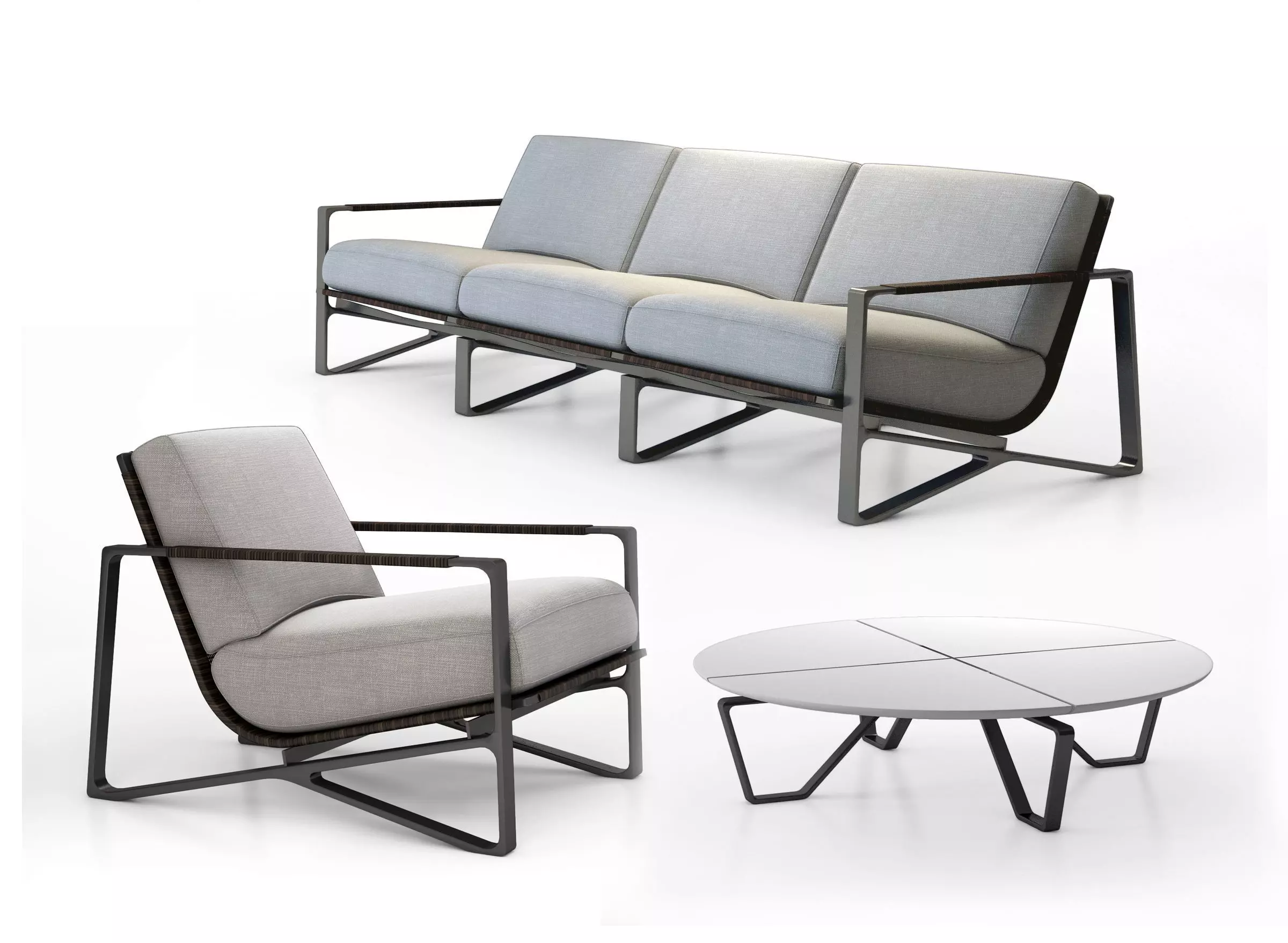 The model has material settings that define how surfaces look (color, shine, transparency, etc.).