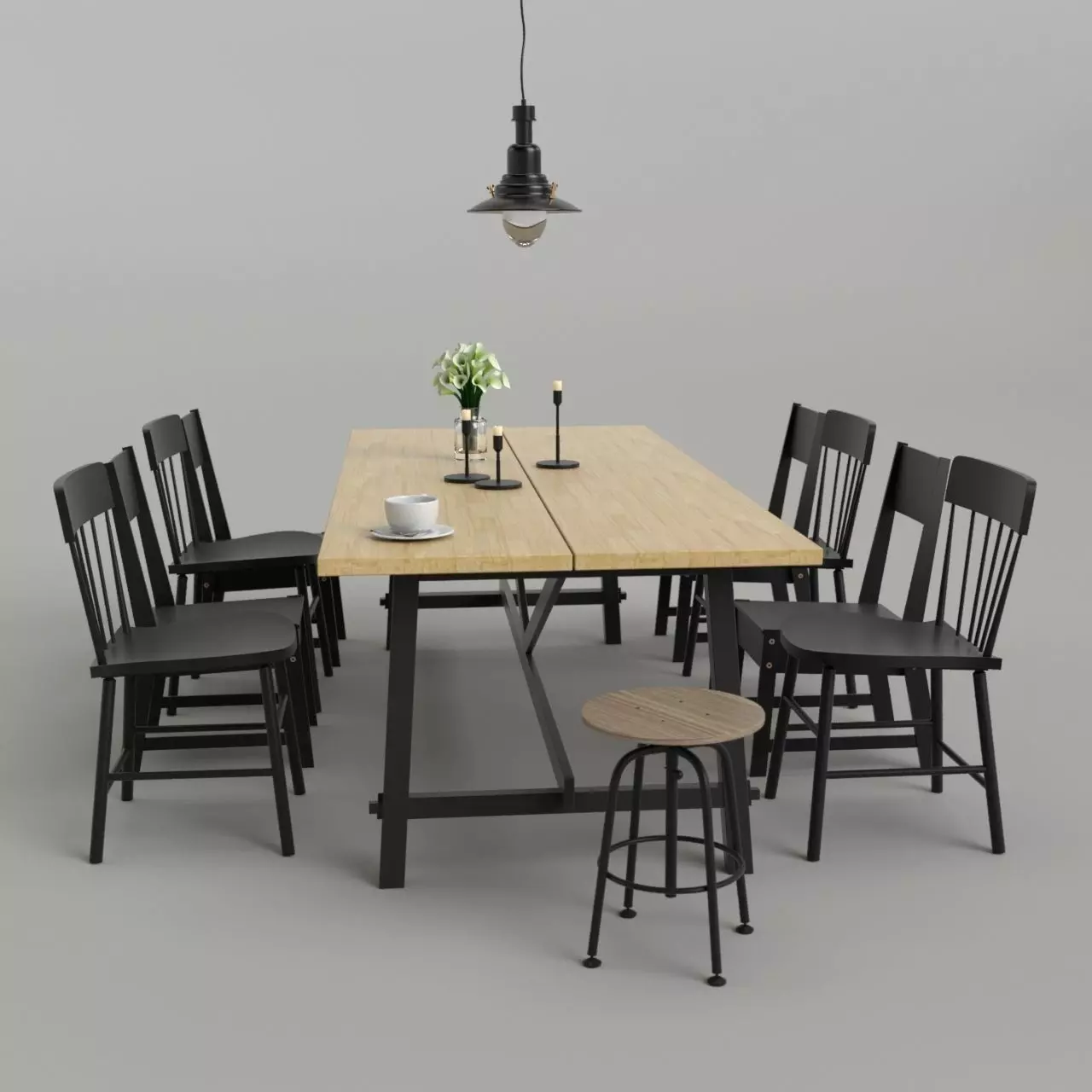 The model has material settings that define how surfaces look (color, shine, transparency, etc.).