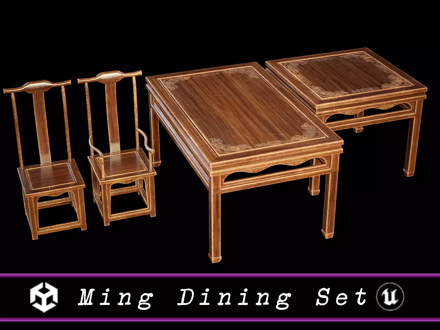 Japanese Ming Dining Set 3D Model. This model contains the Japanese Ming Dining Set itself