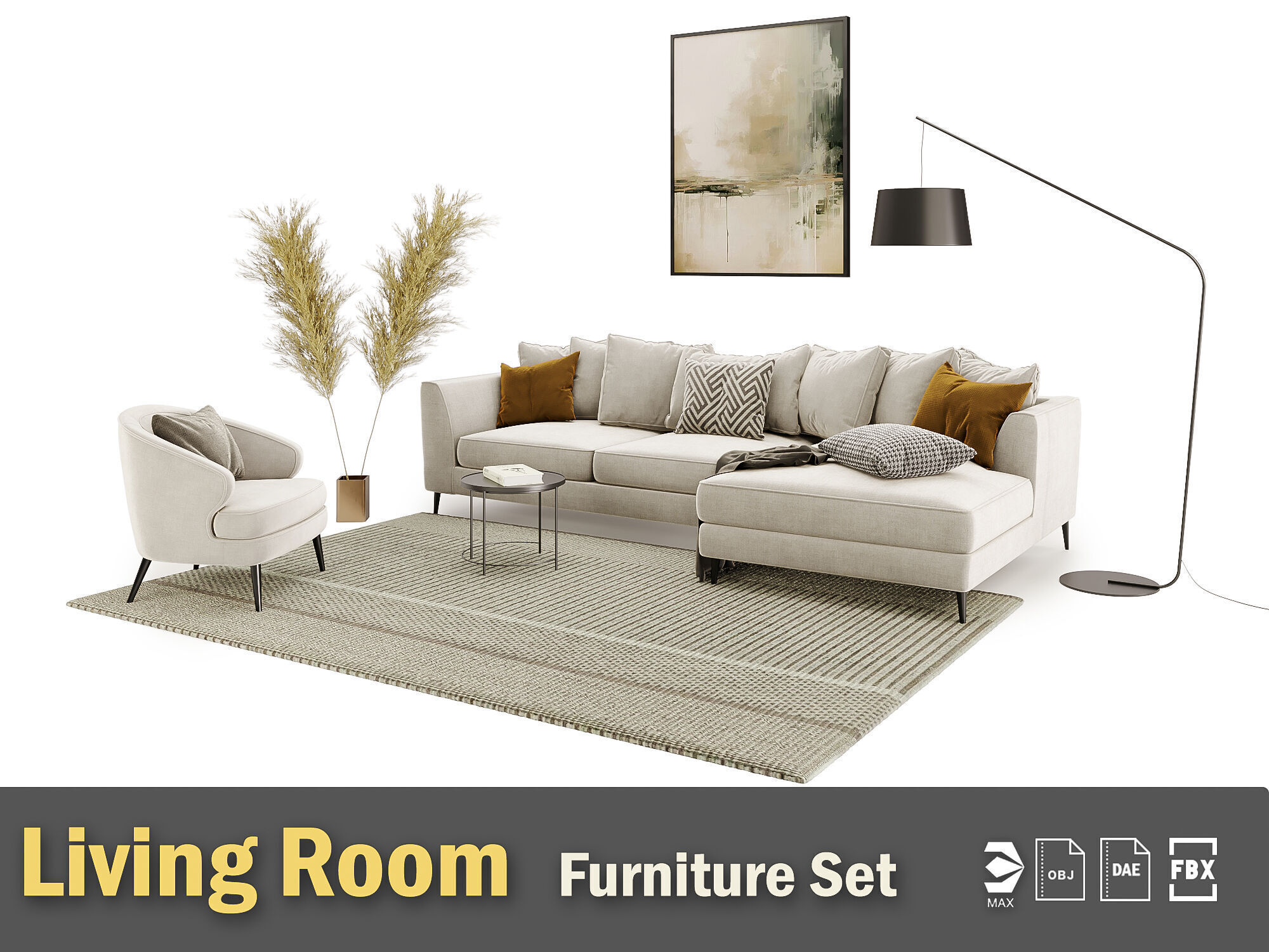Bring elegance, comfort, and modern style to your scenes with this premium Living Room Furniture Set, carefully modeled in 3ds Max and available in V-Ray and Corona Renderer materials.This professionally crafted collection includes 8 unique furniture pieces, all fully UV unwrapped and optimized for high-end visualizations, interior renderings, architectural projects, and virtual staging.