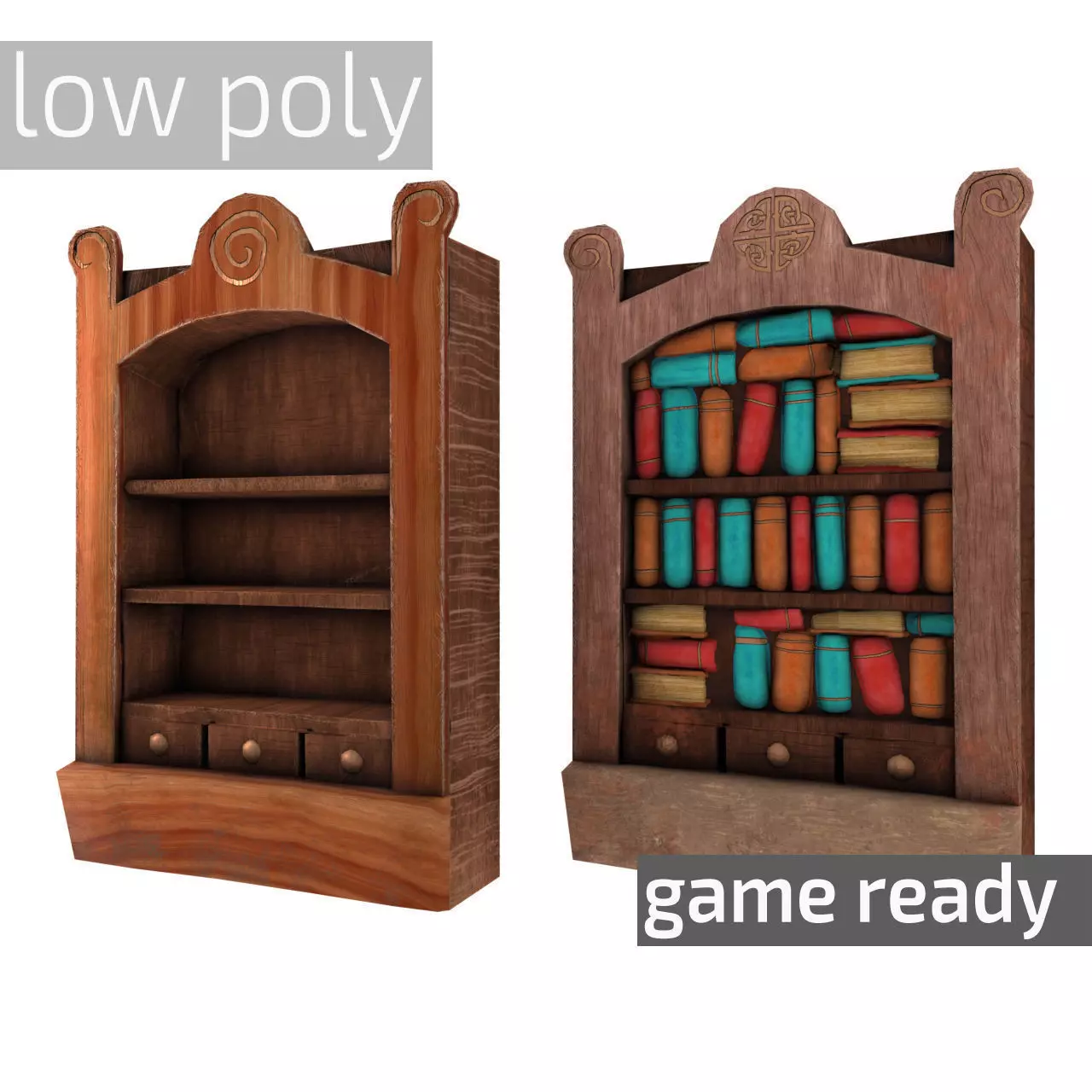 Low poly bookshelf ready for use in (mobile) games, vr or real-time renders/engines