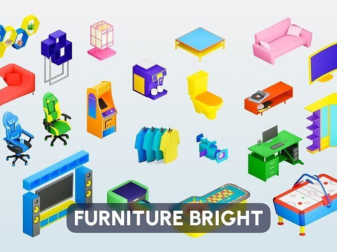 Furniture Bright is a pack of low-poly 3D models with a casual style, optimized for game engines, consisting of 1391 unique assets. With the help of this pack you can build from scratch or transform any interior.