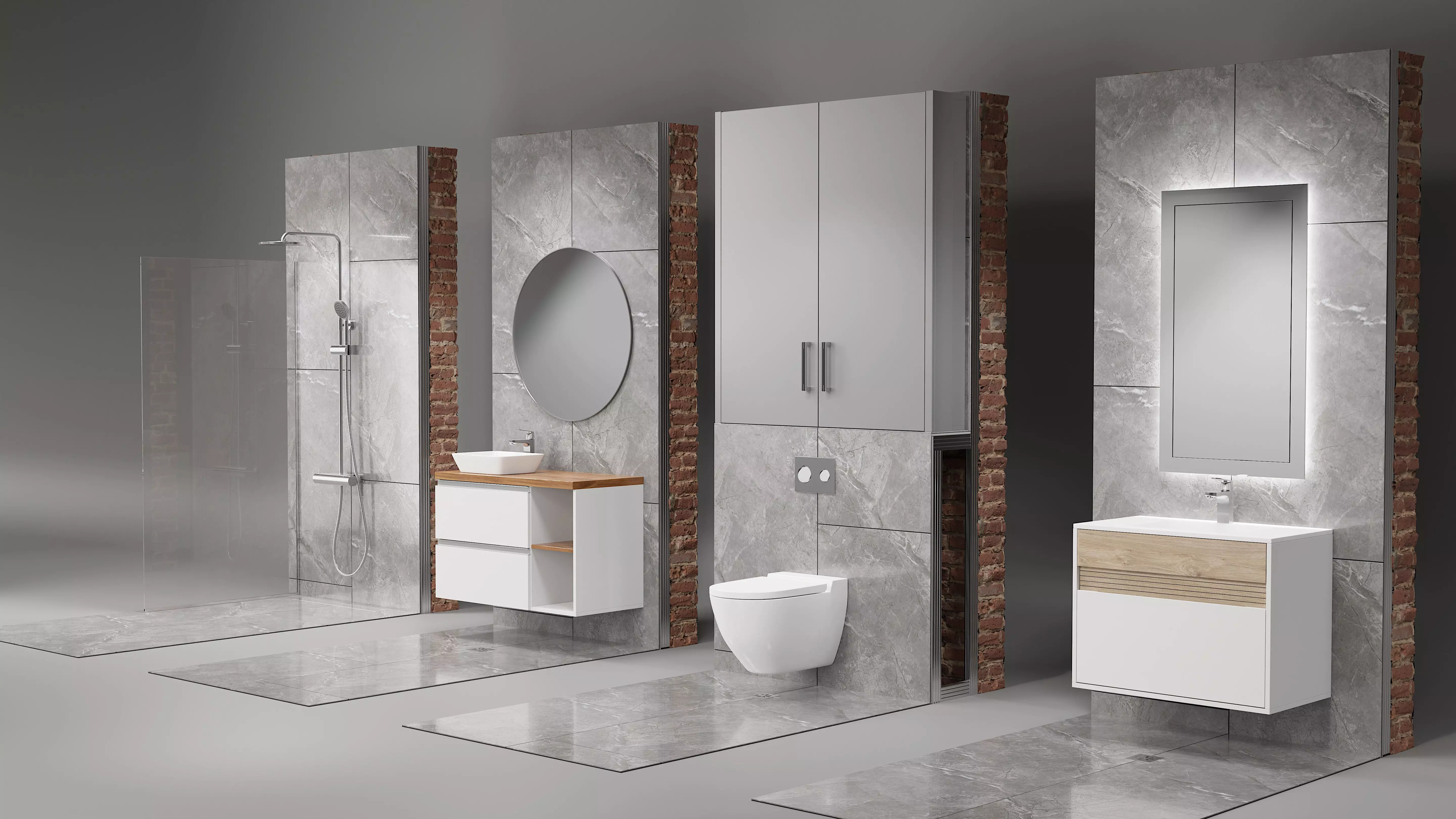 3x Bedroom cabin1x Toilet1x Toilet Button2x Sinks Battery1x Shower2x Mirrors1x Shower Glass1x Shower Glass Metal Profile3x Handles2x PVC Sinks1x LED Light2x Sifon2x UD; CD Metal Profil1x Gips Material1x Brick Cycles Exp. material1x Flore TIlesHDRI