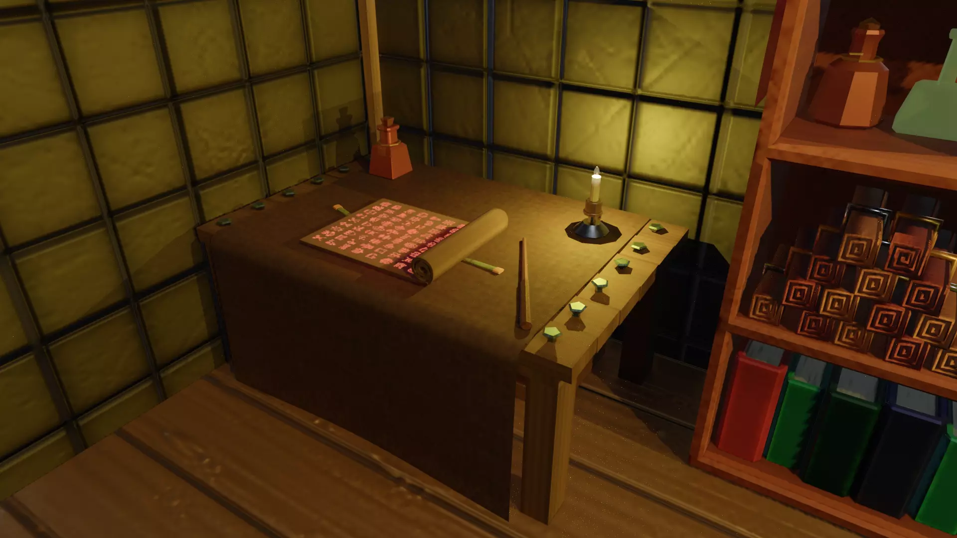Total tris: 17270 Faces: 9144Potions: 70 - 170 FacesScrolls: 150 FacesBookshelf: 256 FacesCrystal Ball: 720 FacesTable with Tablecloth: 686 FacesWand: 57 FacesCandle Holder: 434 FacesHat: 120 FacesCauldron with Bubbles: 1166 FacesTwig: 720 FacesParchment: 550 FacesHouse: 744 Faces