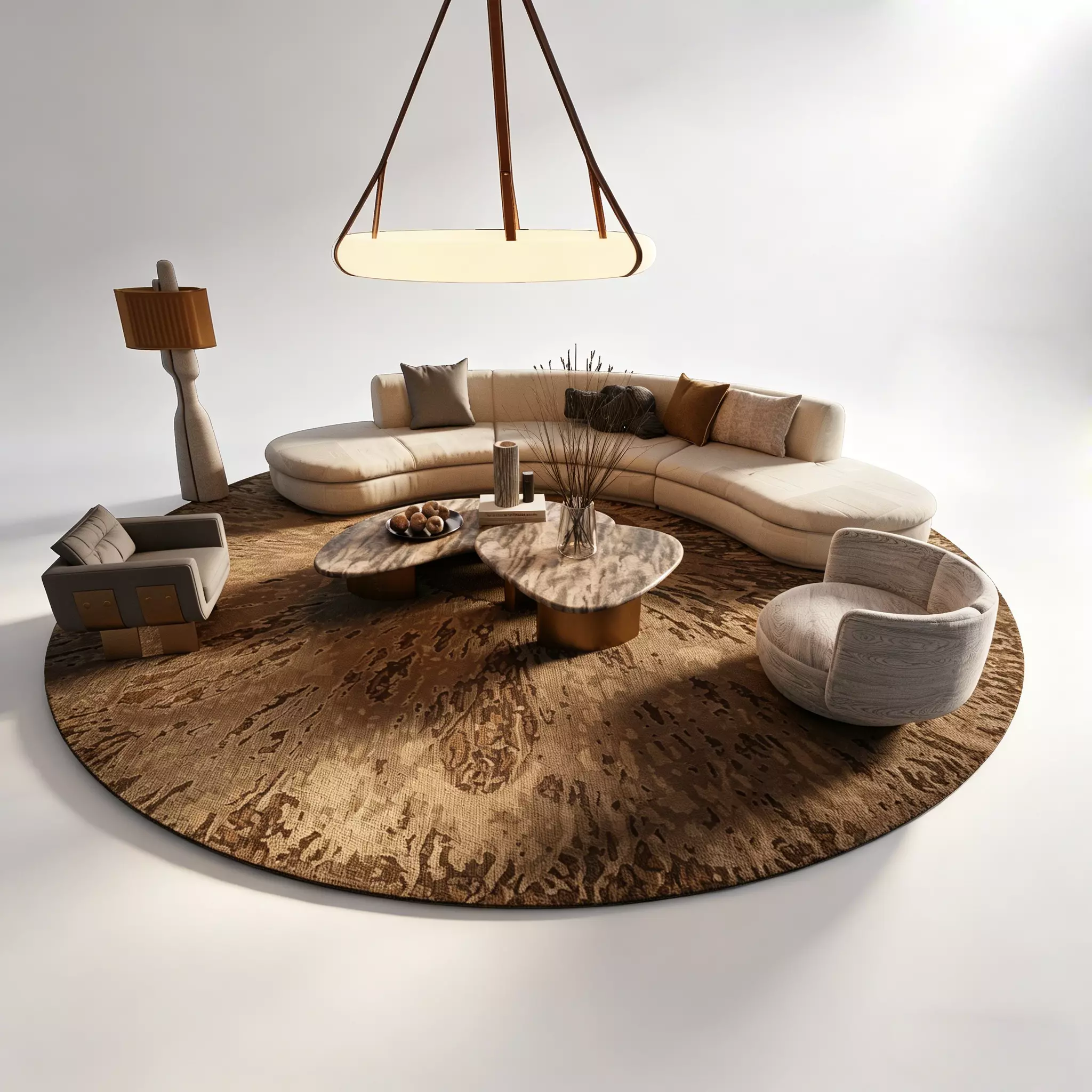 This set highlights soft curved forms, refined material combinations and a warm elegant color palette, creating a premium contemporary interior atmosphere. The sculptural sofa design enhances visual flow and spatial balance, making it ideal for high-end interior scenes.