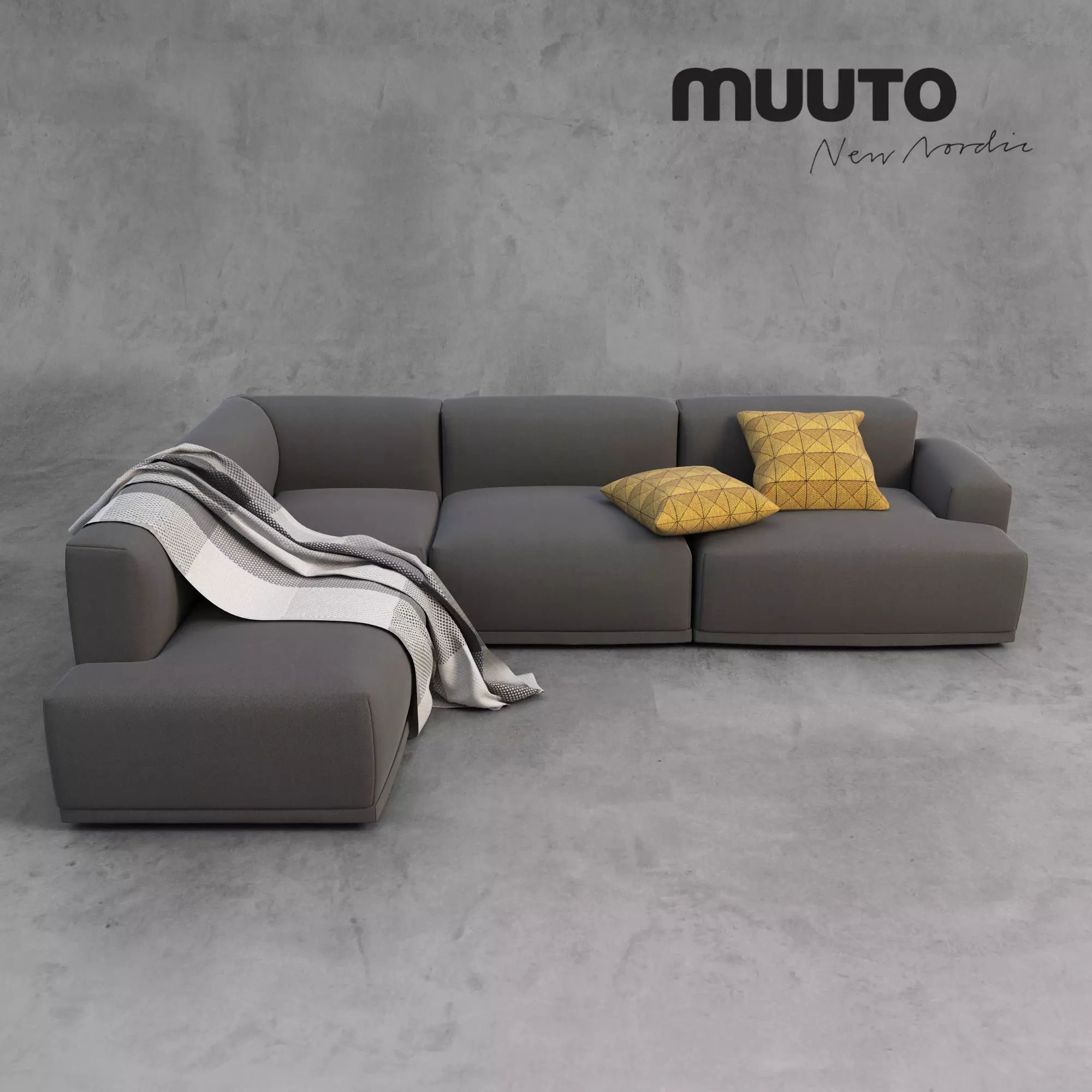 The models Sofa and Accessories: Muuto CONNECT Sofa, Muuto LOOM plaid and Muuto TILE Pillows. Mat Library for Corona render and for V-ray are included.