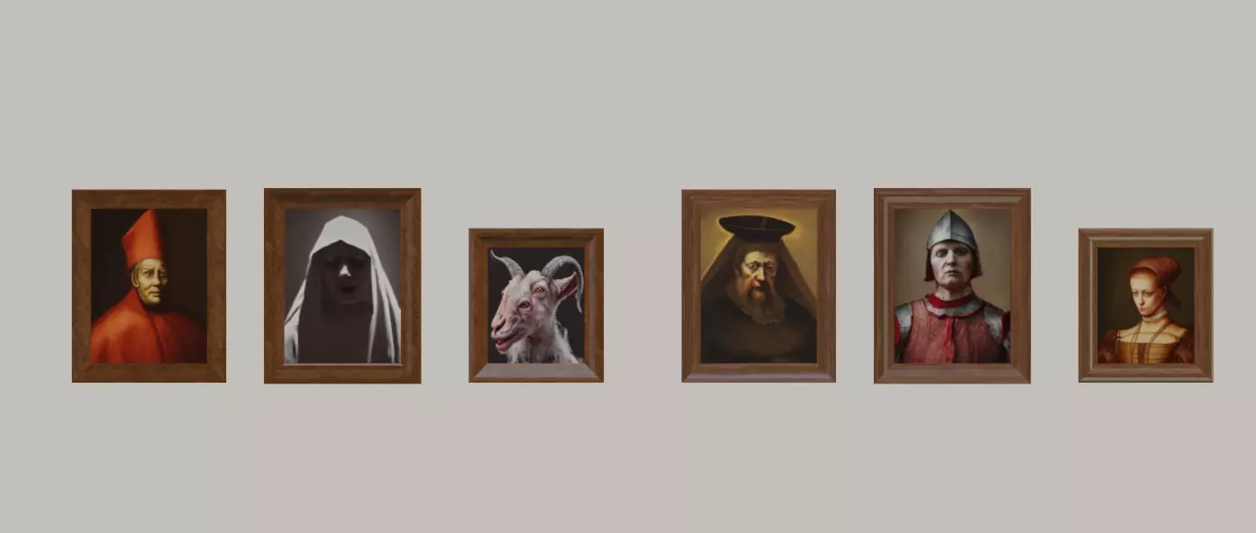 Introducing a set of 6 crafted 3D models depicting enigmatic antique paintings, perfect for enhancing the ambiance of your horror, medieval, paranormal, or vampire-themed environments, adding a creepy touch. These low-polygon models are designed to captivate and inspire, offering a hauntingly beautiful addition to your creative projects.