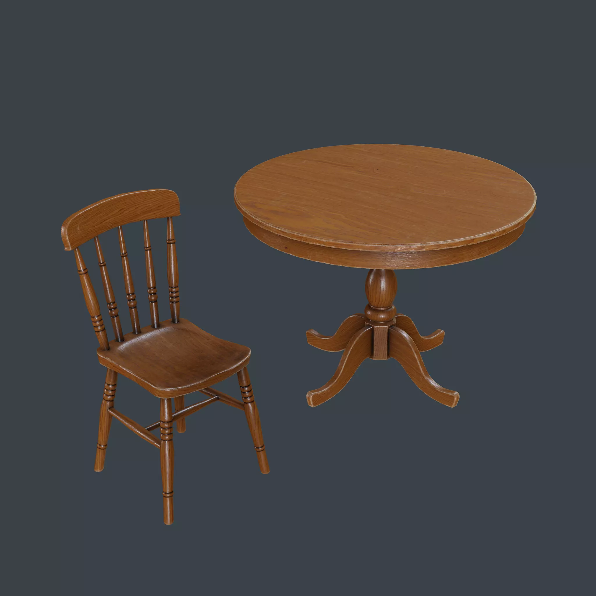 3D model pack of an old dining table and chair.