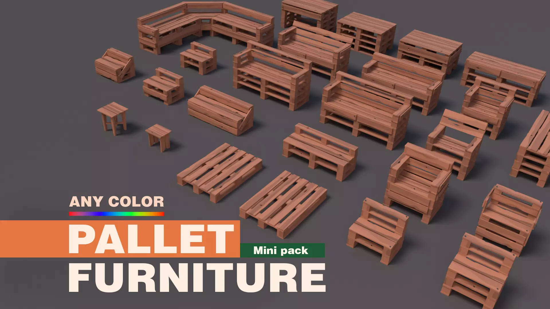 Pallets Furniture - mini pack Low-poly 3D model