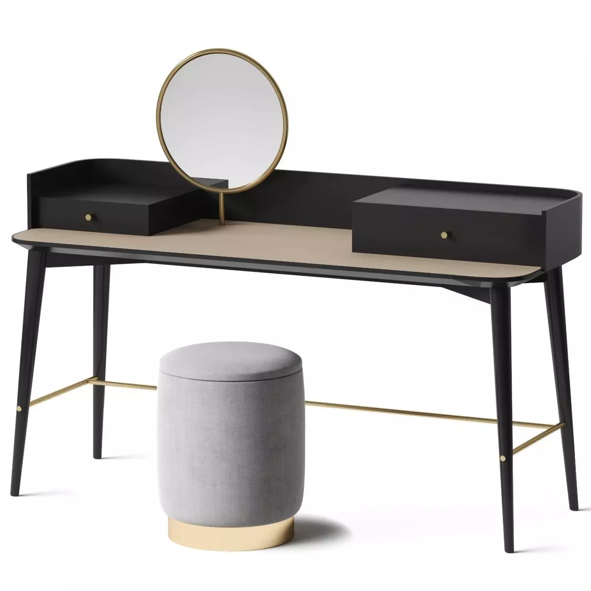 The model has material settings that define how surfaces look (color, shine, transparency, etc.).