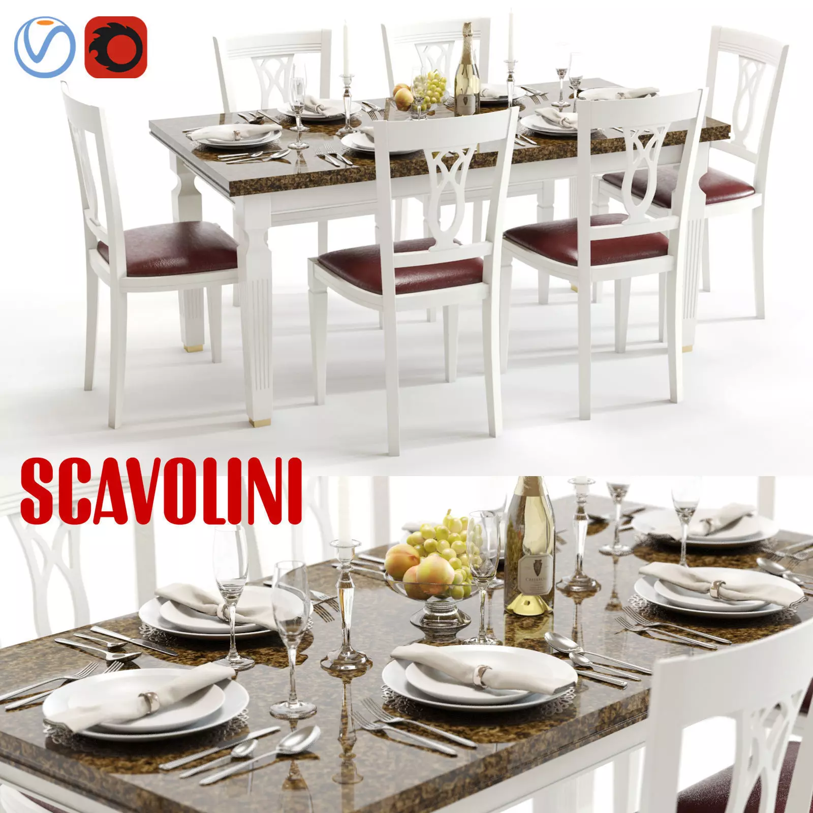 The model has material settings that define how surfaces look (color, shine, transparency, etc.).