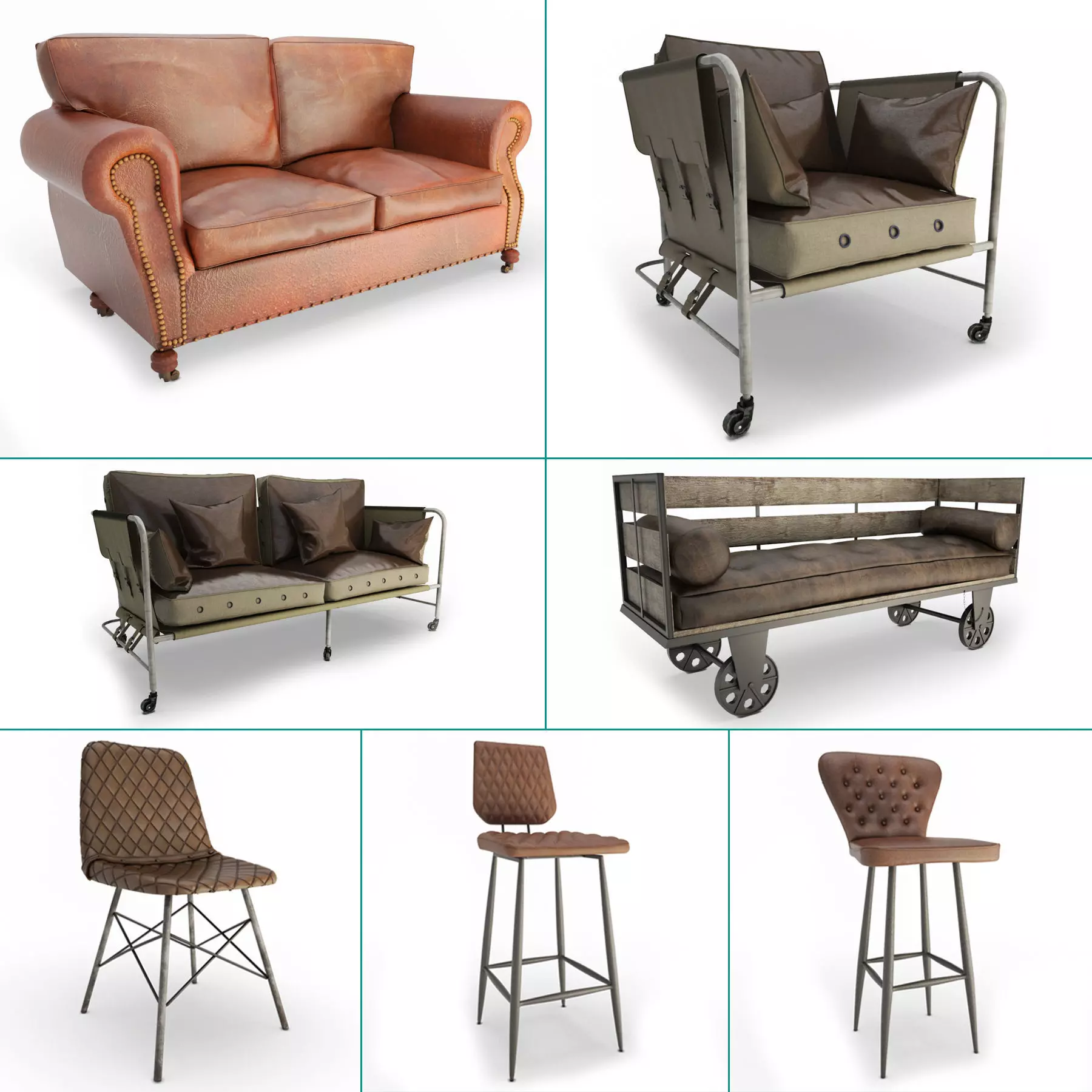 The set Vintage Furniture 3d Models include 7 3d models of vintage furniture realized in 3dsmax 2014.