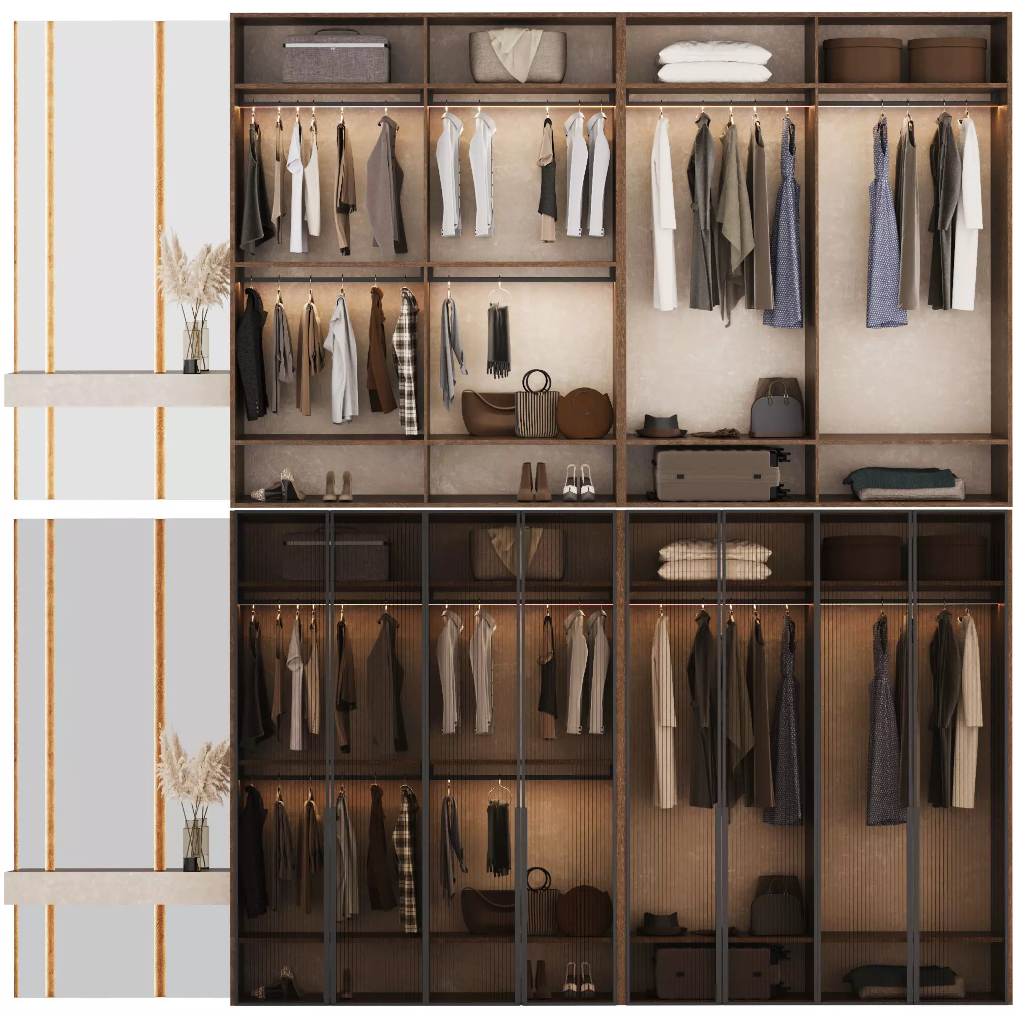 Wardrobe composition in a modern style with a straight shape and filling. The cabinet model consists of modules and is easy to edit.