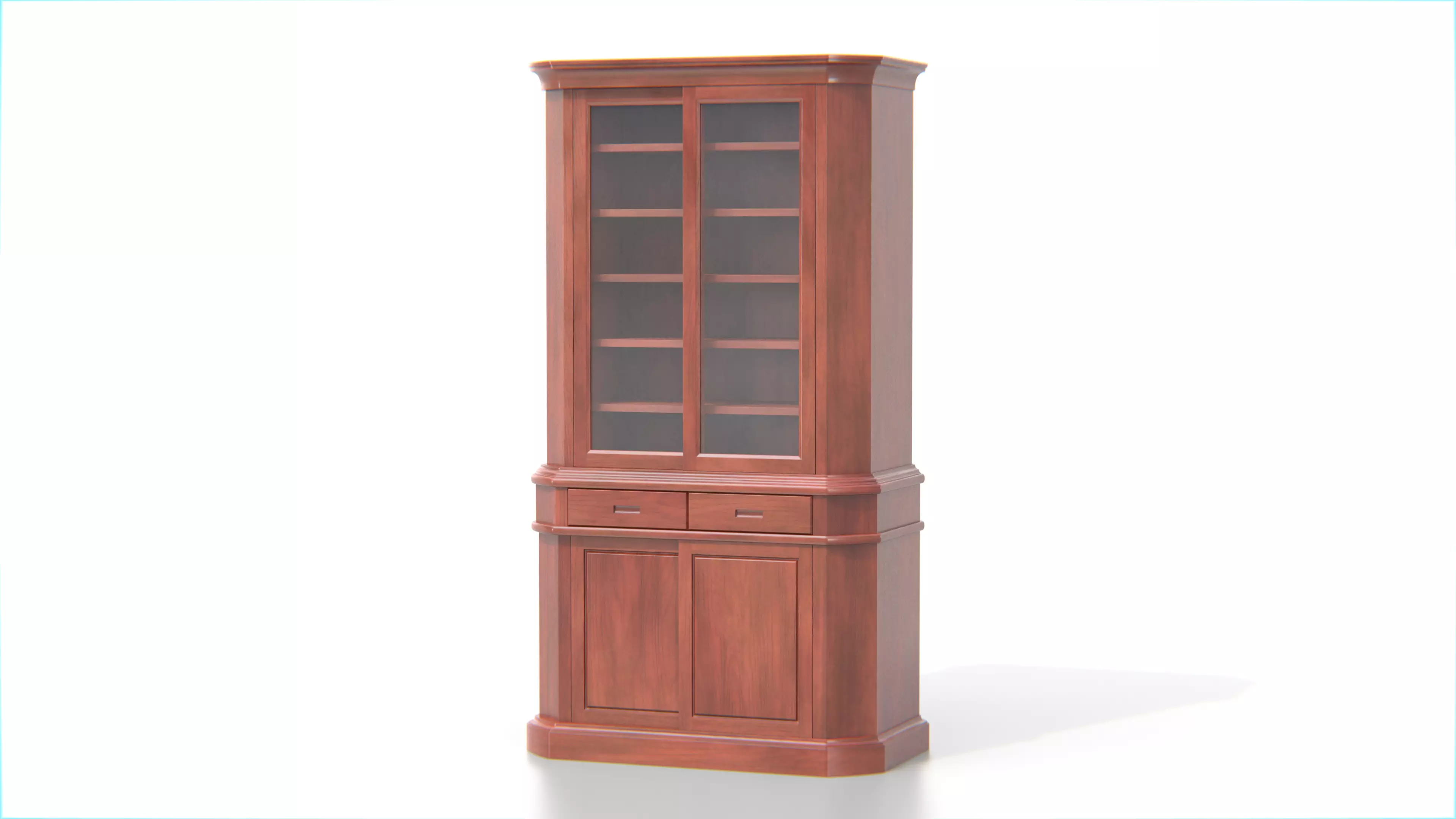Made from polished wood with gently curved corners and minimalist metal handles, the cabinet blends traditional aesthetics with clean, refined lines. Its timeless silhouette makes it a versatile centerpiece for historical interiors, vintage-style kitchens, or high-end 3D visualization projects needing a classic furniture asset.