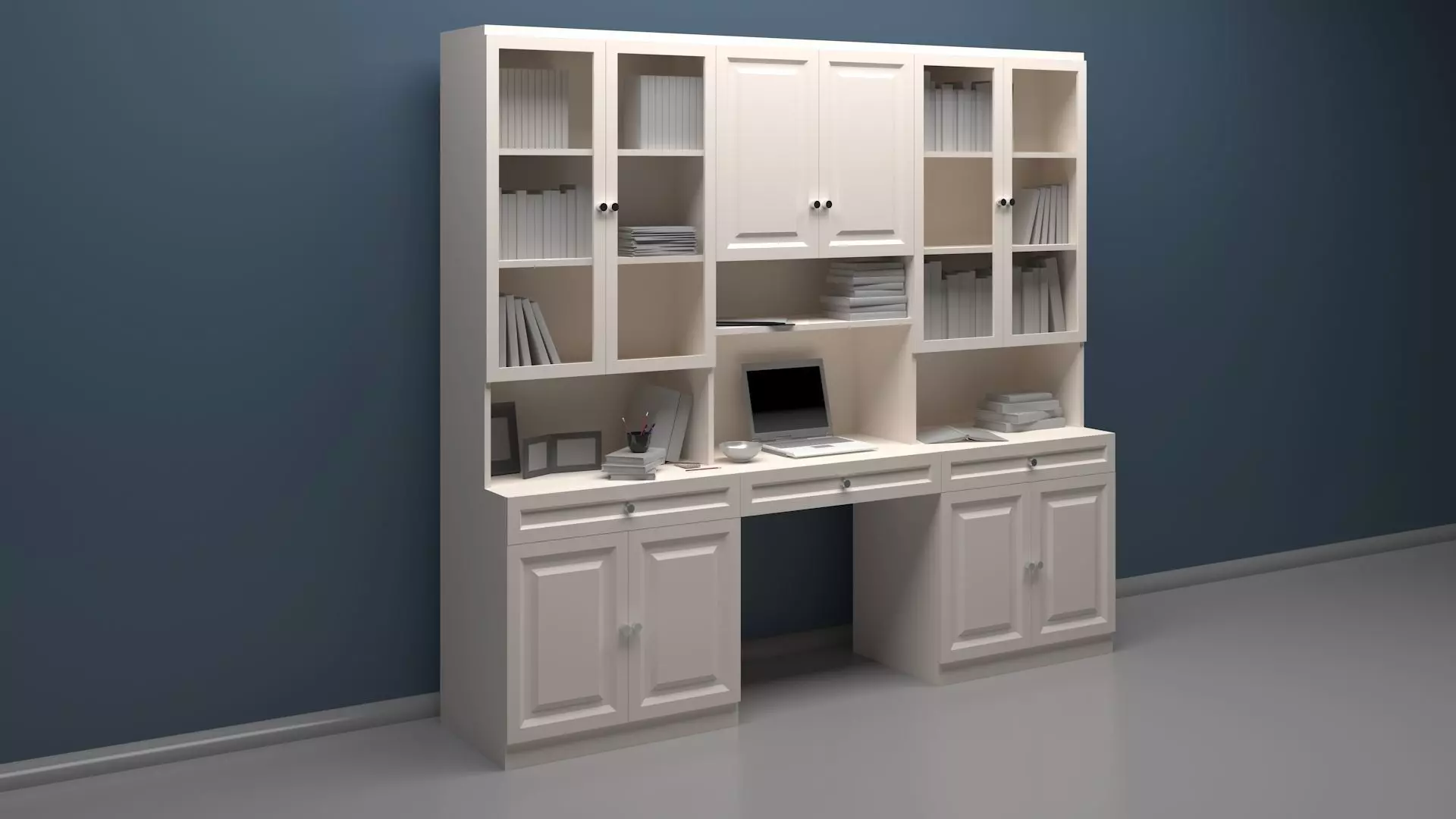 The model has material settings that define how surfaces look (color, shine, transparency, etc.).