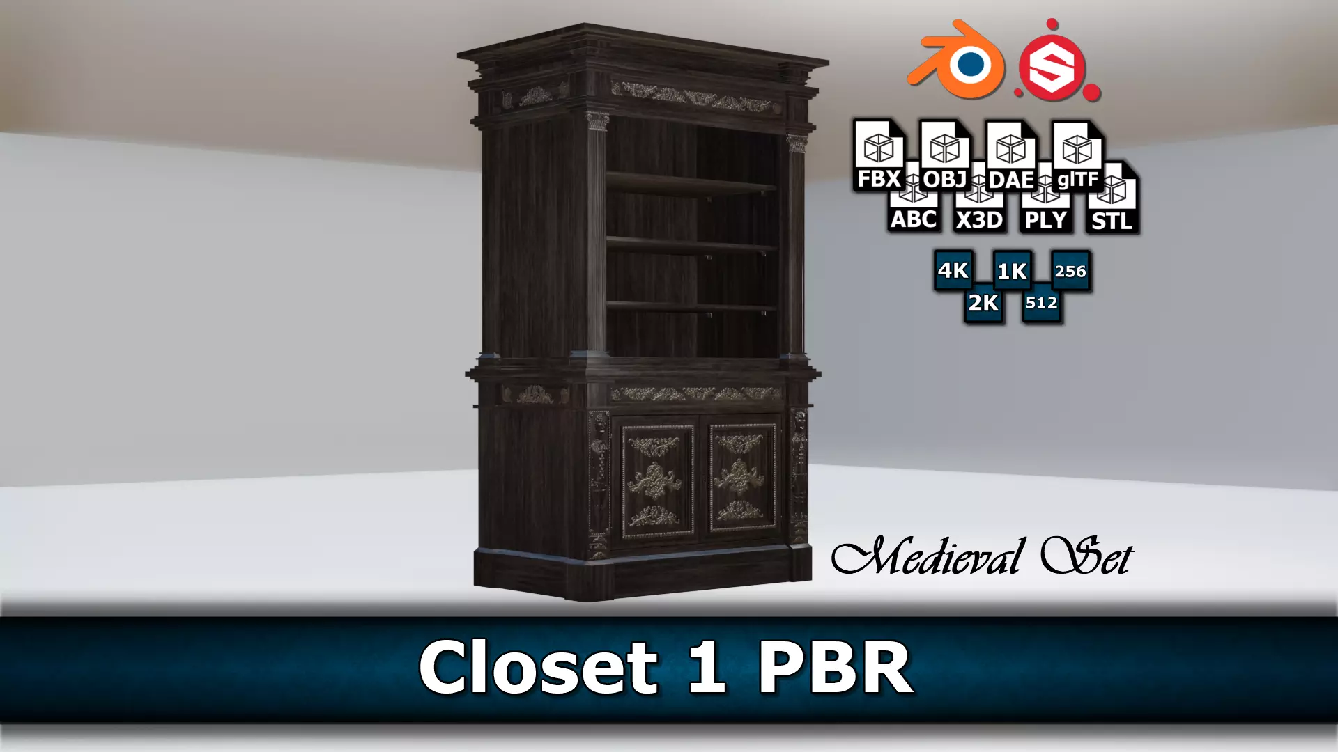 • A low-poly/game-ready model of a medieval (2-piece) closet with PBR-textures.