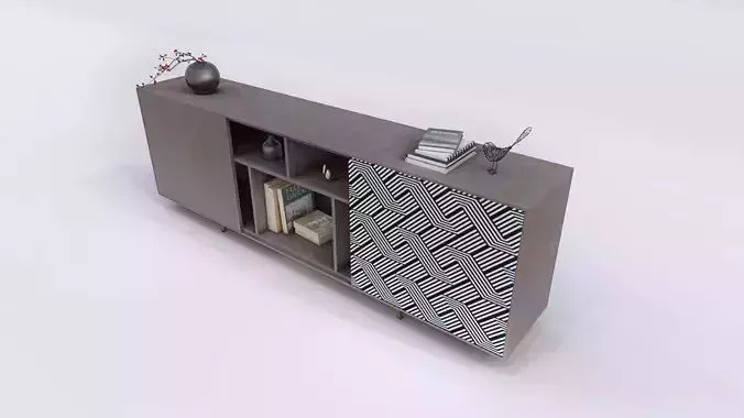 Elevate your interior design projects with this sophisticated 3D model of a modern media cabinet. This meticulously crafted console offers a perfect blend of contemporary style and functional storage, making it ideal for high-end residential living rooms, offices, or commercial spaces.