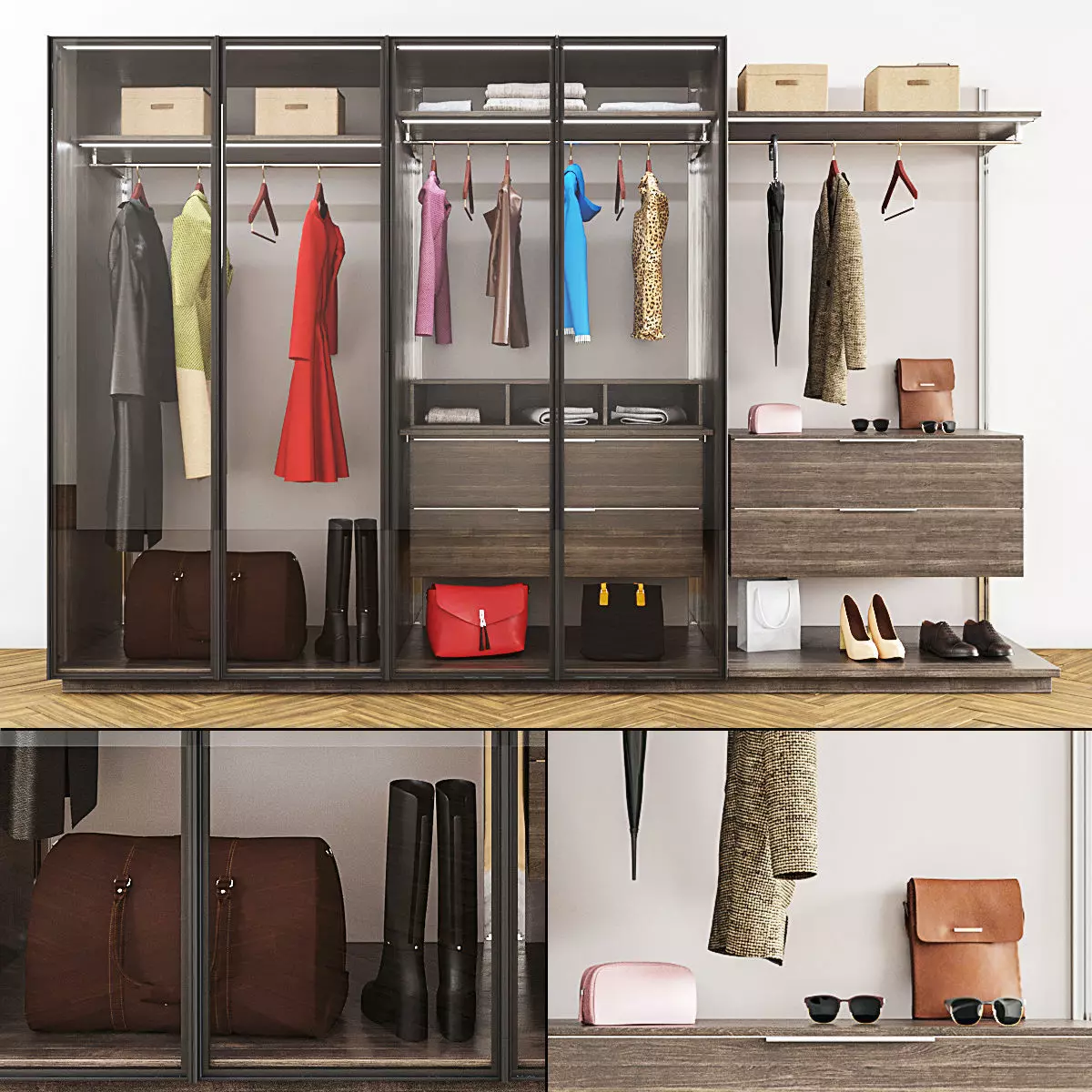 The model has material settings that define how surfaces look (color, shine, transparency, etc.).