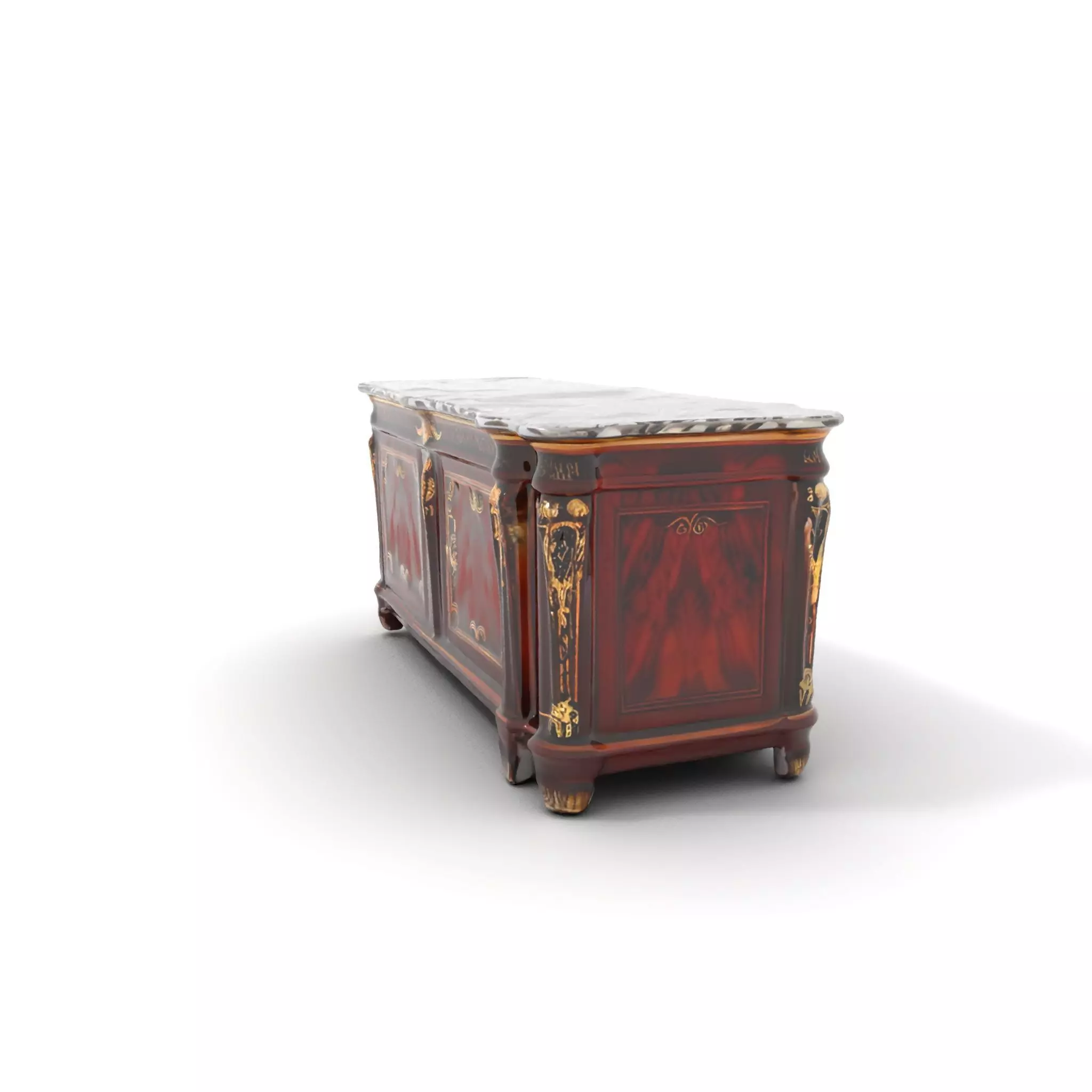 This elegant cabinet with a marble top features exquisite craftsmanship, perfect for historical or luxurious interior scenes. With intricate detailing and a rich wood texture, it adds sophistication to any environment. Each model has 3 levels of detail: low-poly (1000 triangles for mobile), middle-poly (10,000 triangles for environment), and high-poly (100,000 triangles), which allows for the use of this model in production rendering (such as 3ds Max, Maya, Cinema 4D, Blender, Vray/Corona/Cycles, and all others), game engines (Unity and Unreal compatible), and interactive presentations, providing a choice of detail based on the LOD System principle. Potential uses include historical recreations or luxurious home renders. The model's textures are PBR, Diffuse, NormalMap, and reflection/roughness/metallic, suitable for any modern rendering engine. All models are accurately unwrapped and have no overlapping UV. All textures are 4096*4096 in size. Please like and leave a comment if you enjoyed the model.