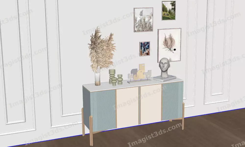 Model ID: #054010;Type: Dresser 3D Model; 3D Cabinet; 3D Foyer Cabinet; 3D Entryway Cabinet; 3D Sideboard; 3D Buffer; 3D Server;Platform: SketchUp;File Format: .skp;Download Size: 2.83 MB;Style: Modern;Suitable in Scenes: Entryway; Living Room; Bedroom; Dining Room; Work for: Interior Designers; Architects;