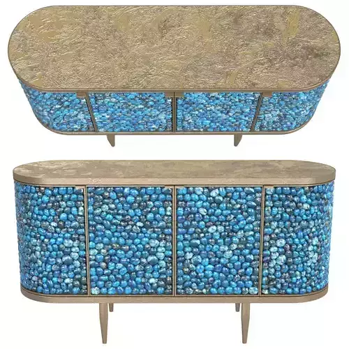 Sideboard with 4 doors covered with Apatite stones, rolled and polished. Patinated brass structure with top patinated with acid.Collaboration Studio Glustin X Stefan LeoDimensions: 140 x 42 x H 75 cmblue stones, beige yellow metal bronze179356 polys