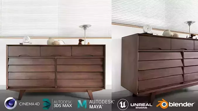 Galleria solid wood 3-tier wide chest of drawers 3D model
