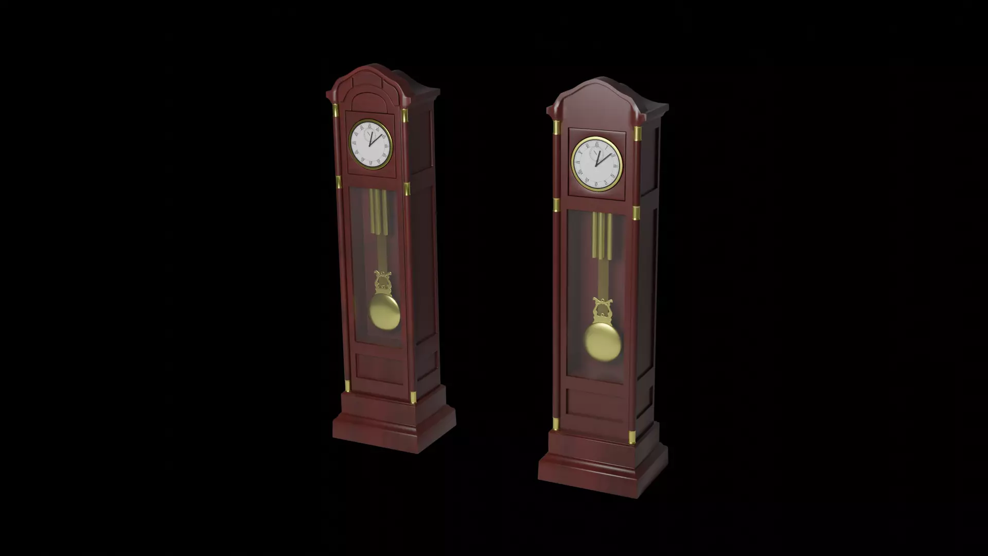 Grandfather Clock 3D model set that I made using Blender. Included are two versions of the model, high poly, and low poly, each with their own set of PBR textures. Both versions look the same with some slight differences.