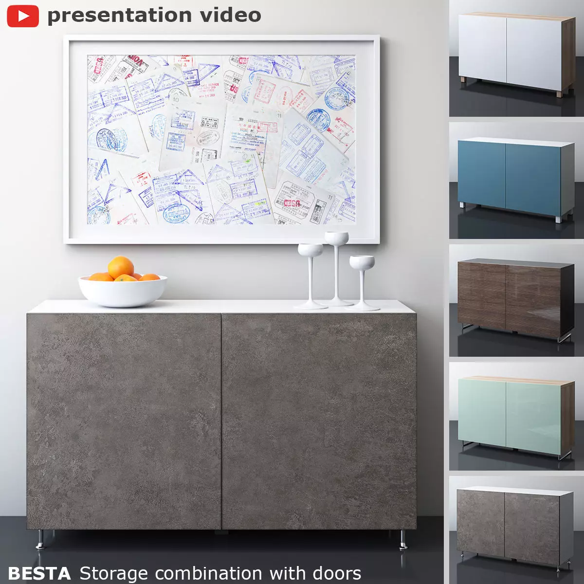 BESTA Storage combination with doorsIKallviken/Stallarp, dark gray concrete effect; Selsviken/Sularp high-gloss/light gray-green; Valviken dark blue; Selsviken/Sularp high-gloss/brown; Laxviken white.Archives included: textures, materials (vray),3DS, FBX, OBJ, 2011 max, 2014 max scene.Model was created in 3ds Max 2014.Shader for V-Ray 3.30.05TerboSmooth (Instance) is turned off.