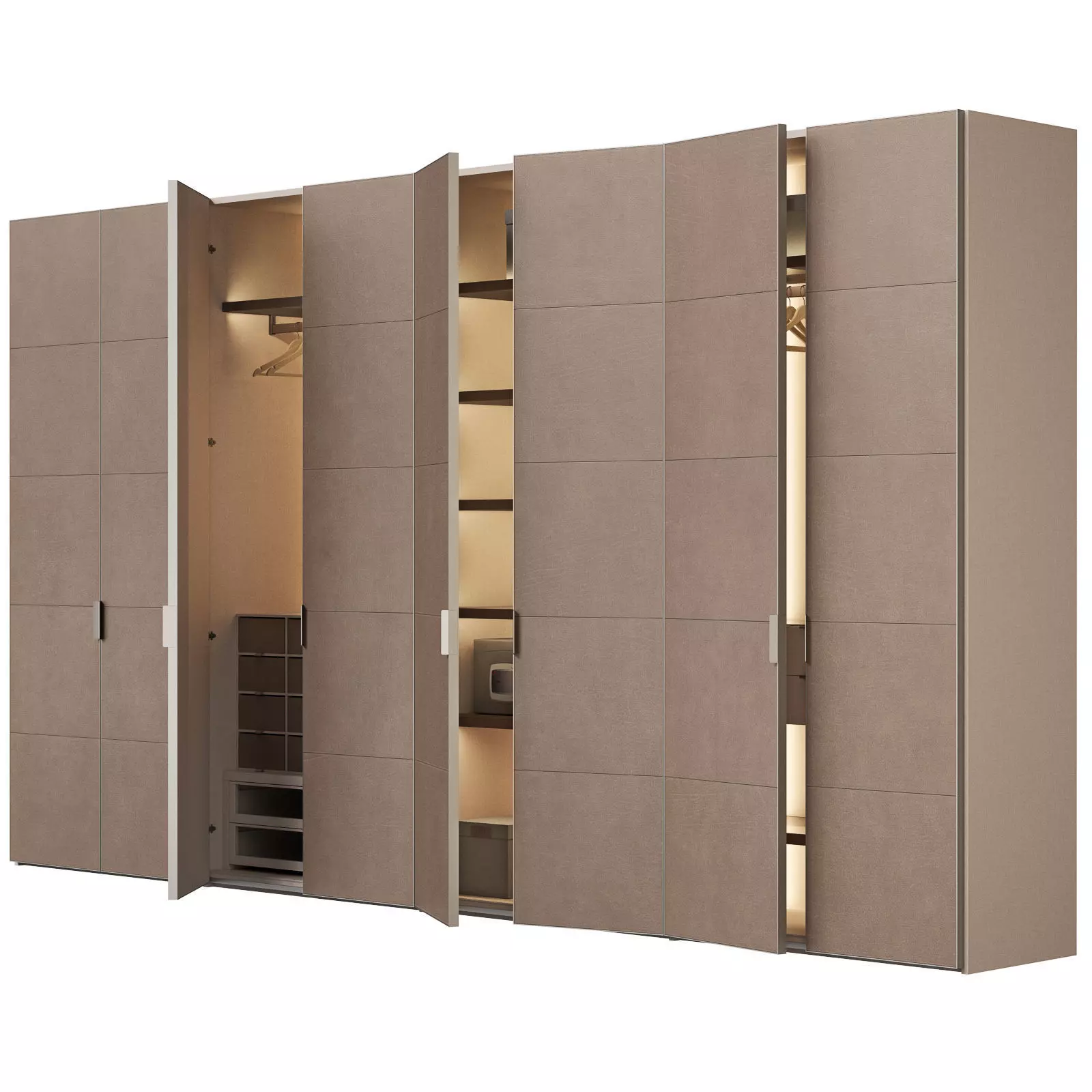 The model is assembled for subdivision. When using import formats, please apply MeshSmoth/TurboSmoth with 2-3 iterations.https://www.lemamobili.com/int/nur-bespoke-wardrobe-aluminium-handlesDimensions: 469*63.7*262HsmModern aesthetics of this custom cabinet with hinged doors
