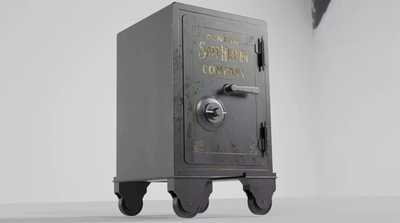 The safe features a sturdy metal body, a functional front door, and simple detailing that reads well from any gameplay camera distance. All UVs are neatly laid out with no stretching, and the texturing follows an optimized workflow to ensure fast loading times and easy material tweaks.