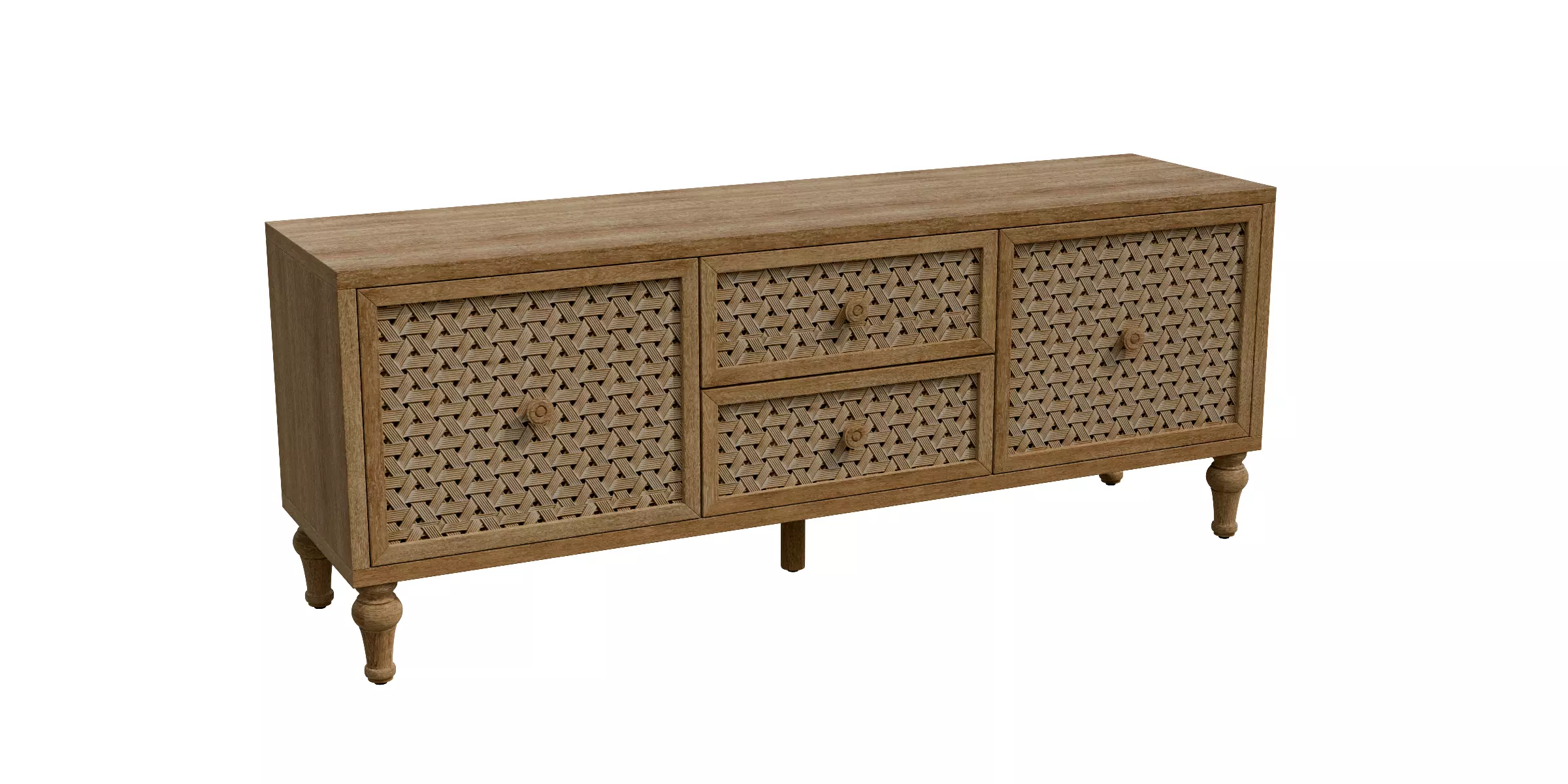 Mid-Century Modern Rattan Distressed Tv Stand Low-poly 3D model