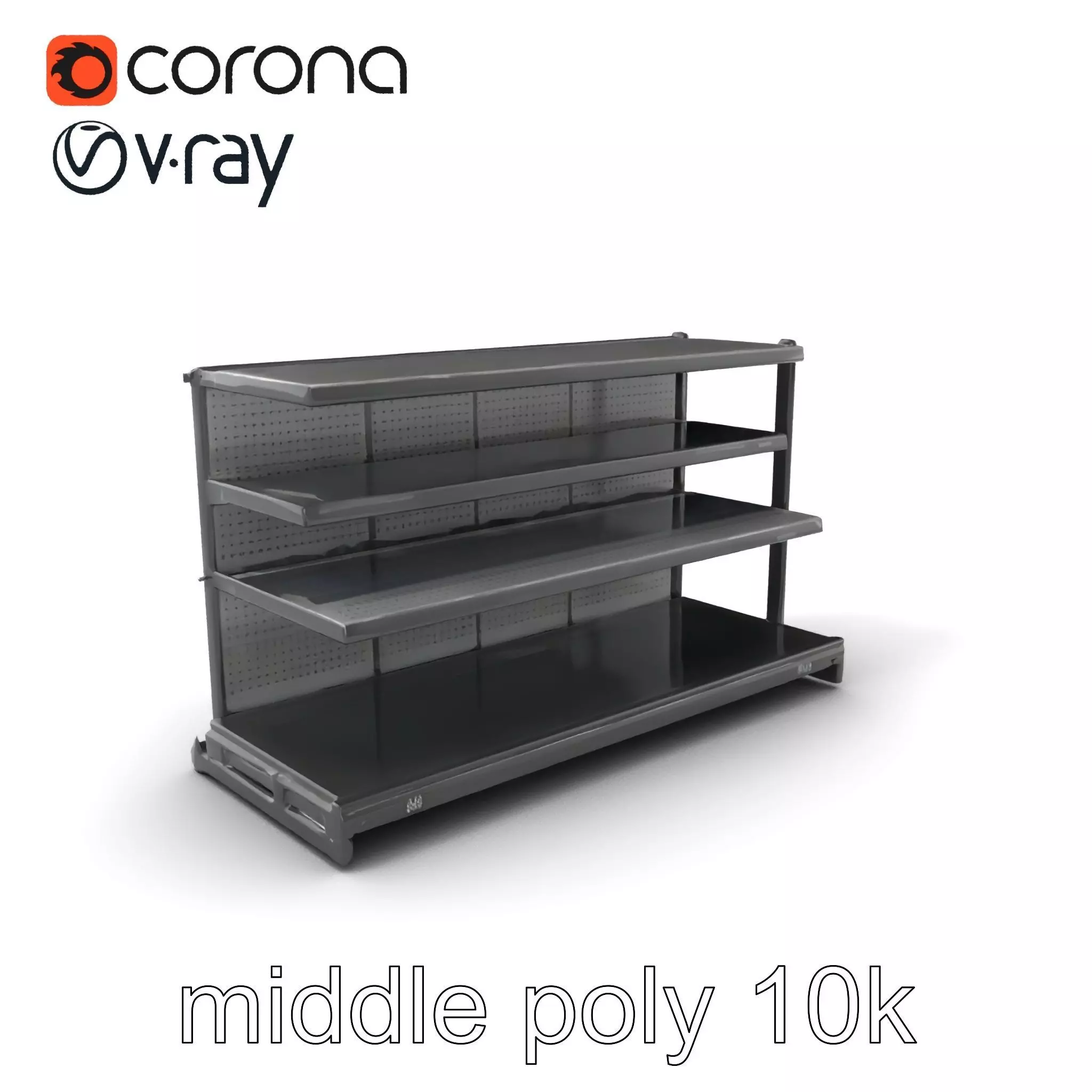Each model has 3 levels of detail: low-poly, middle-poly, and high-poly, which allows for the use of this model in production rendering (such as 3ds Max, Maya, Cinema 4D, Blender, Vray/Corona/Cycles and all others), game engines (Unity and Unreal compatible), and interactive presentations, providing a choice of detail based on the LOD System principle. This open-frame supermarket shelf is perfect for retail visualizations, store layout simulations, and virtual shopping environments. Designed with a tubular framework in matte black and invisible joints, it ensures seamless integration into modern retail themes. Features include versatile shelving for miscellaneous products, an anti-theft mesh flooring, and engraved product identifiers on edges. The model's textures are PBR, Diffuse, Normal Map, and reflection/roughness/metallic, suitable for any modern rendering engine. All models are accurately unwrapped and have no overlapping UVs. All textures are 4096*4096 in size.