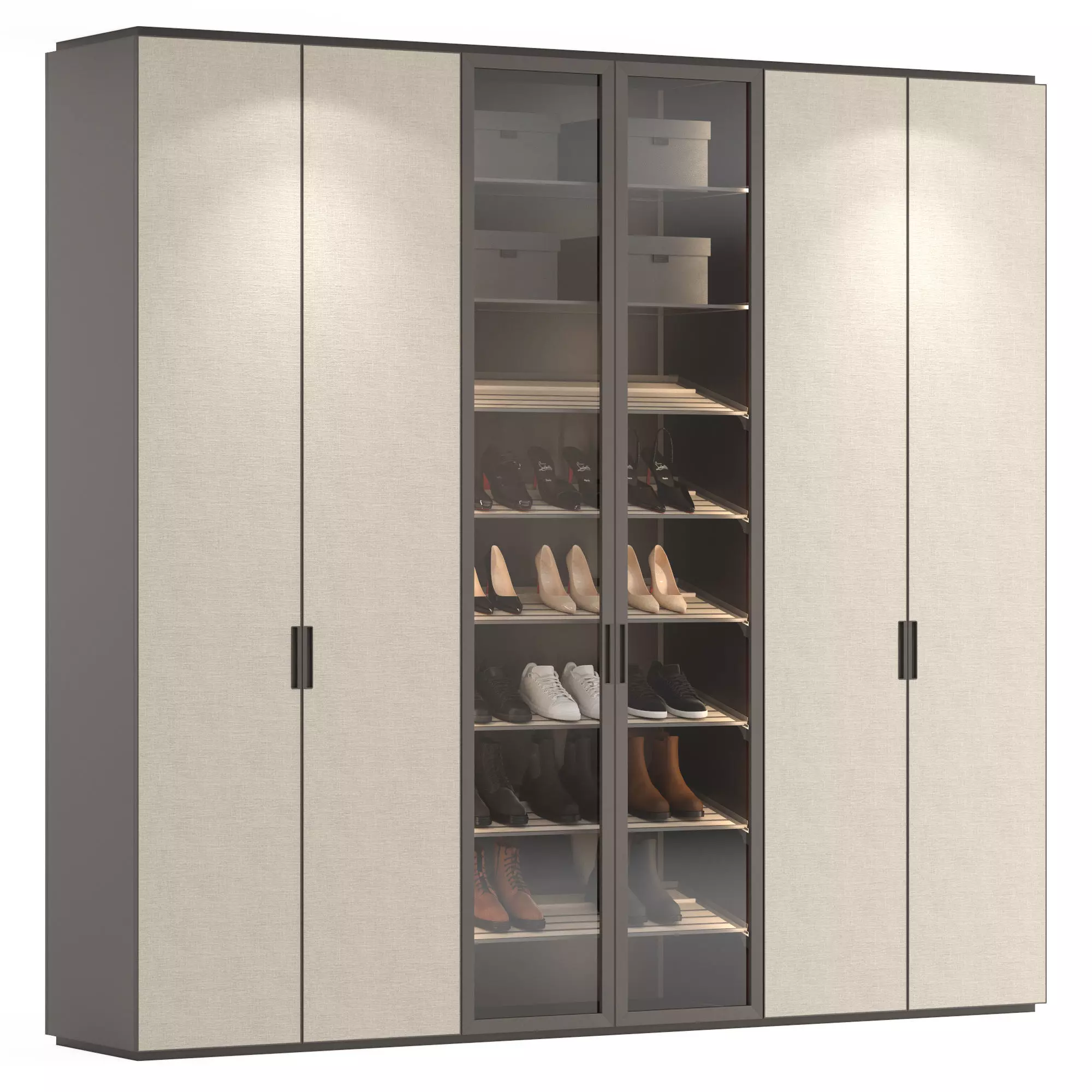 Modular wardrobe, as shown in the preview. The wardrobe can be used either against a wall or to divide the space.On the back wall there are wall panels Rimadesio modulor.Module size: length 100 cm, width (depth) 600 cm, height 280 cm.Overall dimensions: length 300 cm, width 600 cm, height 280 cm.