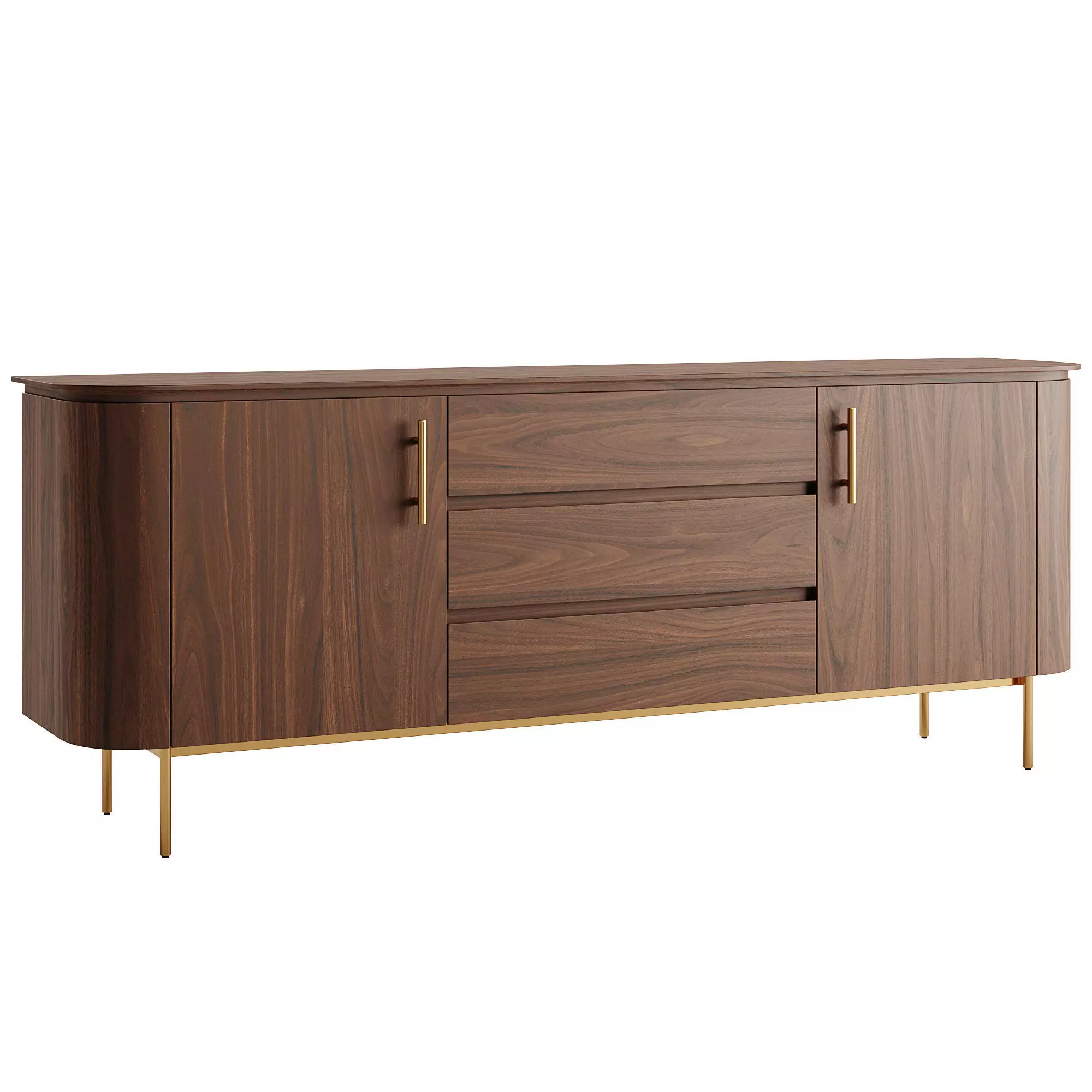 Sideboard in walnut wood and golden steel 3D model