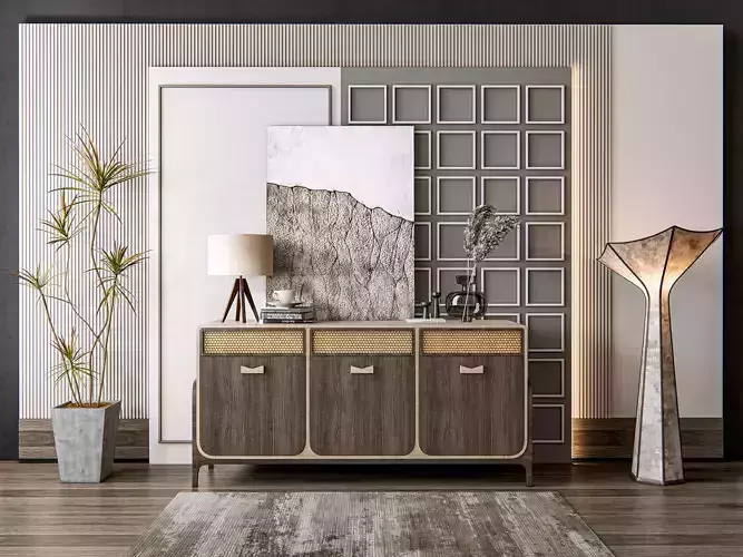 Sideboard with wall panel and flooring 11 3D model