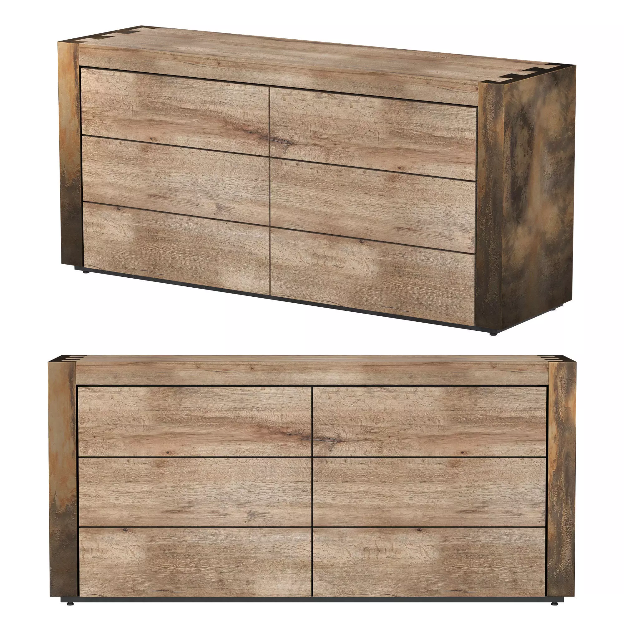 Name: Telluride Six Drawer DresserType: modelMid: {AADC000E-1589-40EE-824B-F4BC2DA9DE6C}Format: 3Ds Max 2015Export: FBX, OBJ, MATRender: VRay (5.x), Corona (9)Polys: 3394Verts: 3396Matclasses: Multimaterial,VRayMtl,_CoronaPhysicalMtlUnits: MillimetersDimension: 1828.64 x 508.0 x 857.05Modeller: Artem RAdionovPreset: FULL CUSTOMManufacturer: ARHAUSDate: 2025.1.12Viruses: Clean, tested by PruneScene!Preview: YesTags: telluride six drawer dresser arhaus, loft, industrial, oxidized, steel